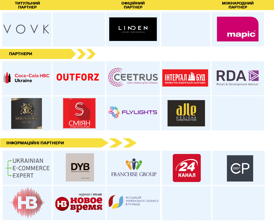 The event partners were such profile Ukrainian companies: CEETRUS Ukraine, Outforz, MAPIC, Coca-Cola Beverages Ukraine, RDA, Shustoff, Smyan and Flylights.