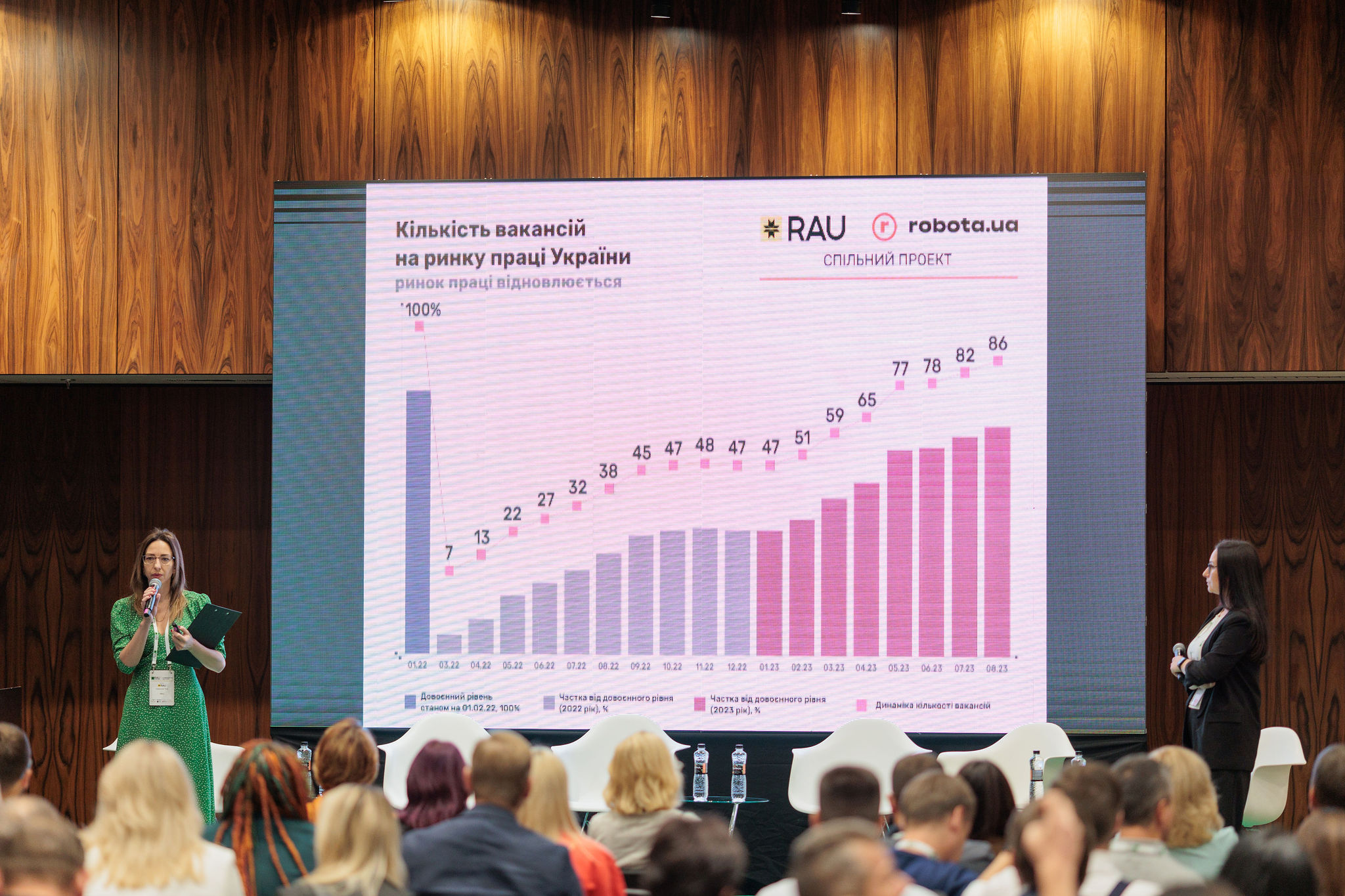 The session “Labour Market. How to survive the high season in the face of staff shortages” was held in the Hall No. 2. Yana Yermakova, Head of Analytics at the Retail Association of Ukraine, and Yuliia Dalibuk, Marketing Director at robota.ua, shared their analytics on the “Challenges and dynamics of the retail labour market”.