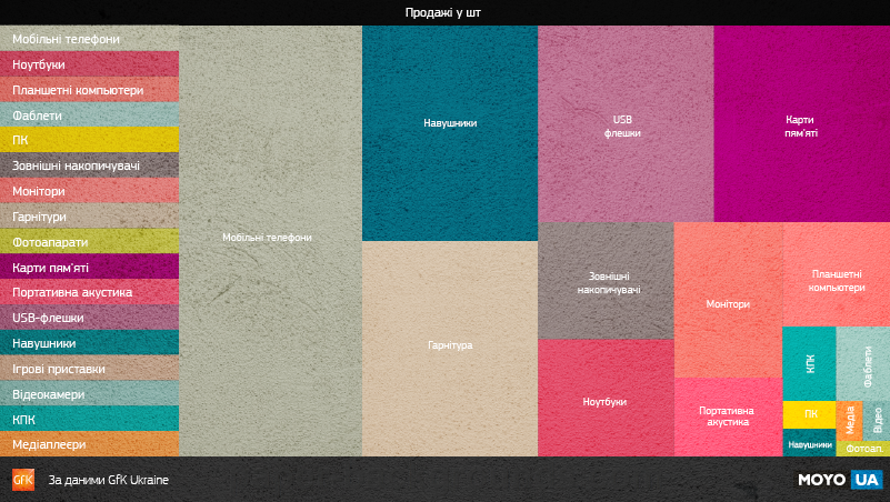 Незважаючи на те, що сума в 22 млрд грн здається величезною, за неї було куплено близько 6 млн телефонів і смартфонів (в середньому 3 700 грн за одиницю). З огляду на попит минулого року, аналітики підрахували, що нові мобільники українці купують, в середньому, раз в 5-6 років (без урахування ринку б/в пристроїв і покупок за кордоном).