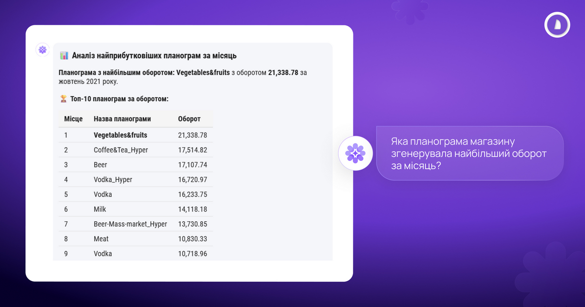 «Яка планограма магазину згенерувала найбільший оборот за місяць?»