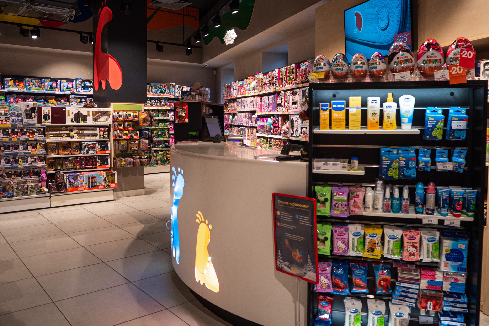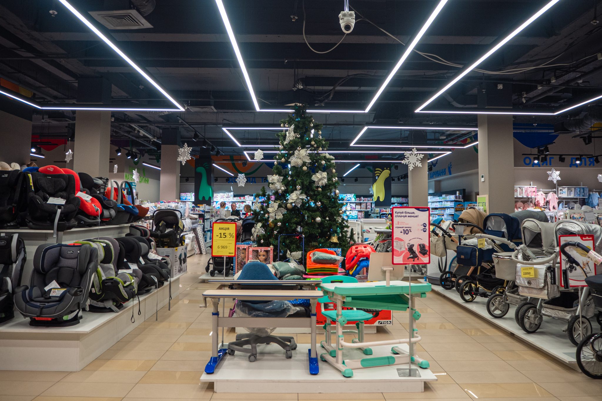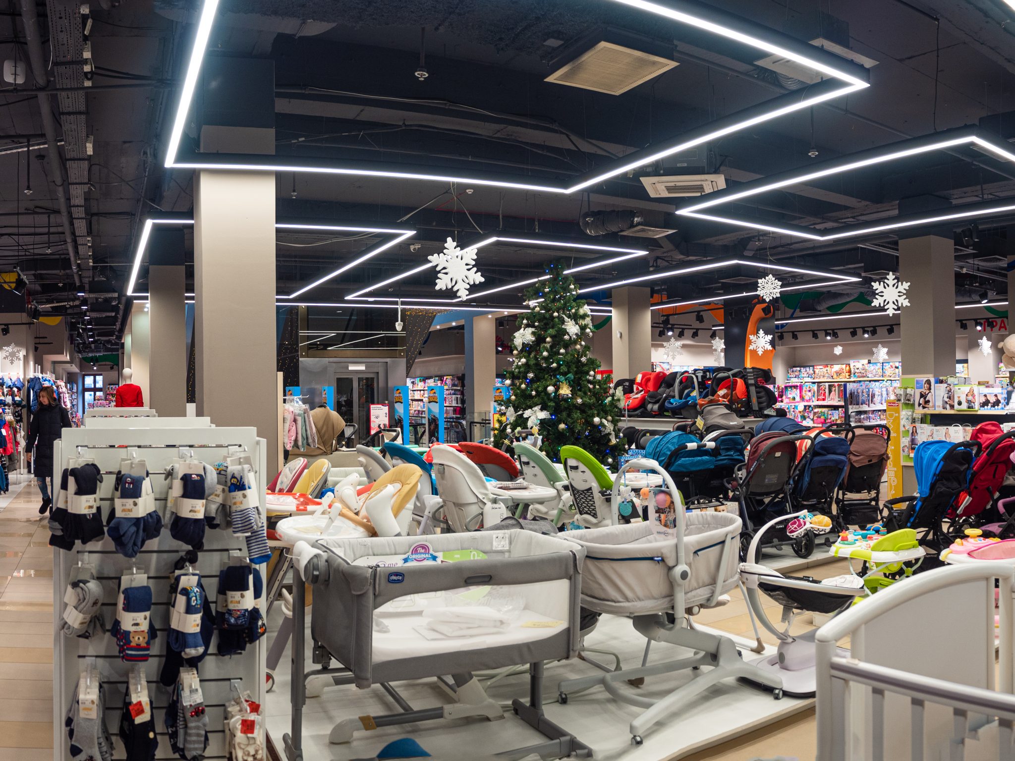 Крім цього, реалізували в магазині новий сучасний і креативний дизайн, а також світлові рішення, які покликані створити настрій і приємну атмосферу в магазині. Наші клієнти можуть купити все необхідне для дитини в одному магазині, на одному поверсі. При цьому мами з колясками можуть не турбуватися про підйом на поверх, бо ліфт виходить прямо в магазин. Потрапляє в торгову точку і потік відвідувачів ТЦ, що піднімається по ескалатору.