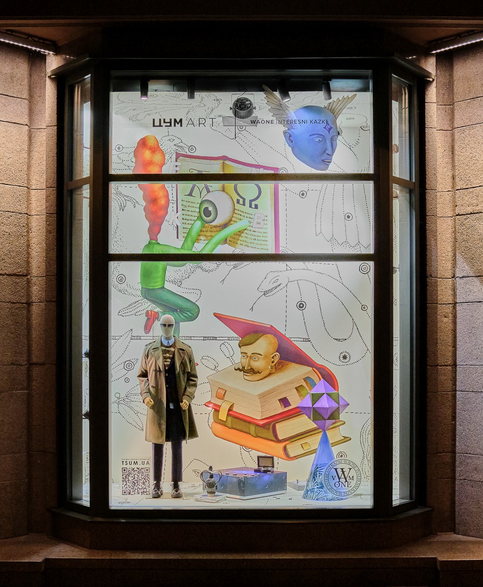 Уже традиційно ЦУМ відкриває осінній сезон запуском арт-вітрин – цьогоріч у колаборації з відомим українським художником Володимиром Манжосом, який також розробив серію ілюстрацій для пакетів центрального універмагу.