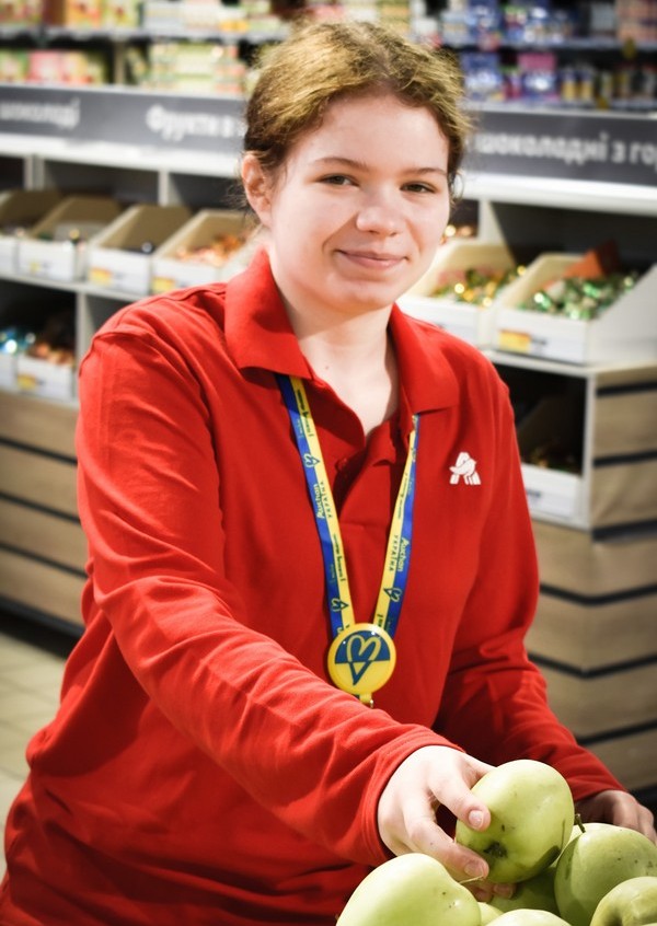 Ірина Рябус працює молодшим комплектувальником інтернет-замовлень у київському магазині Auchan на Глушкова вже три місяці. Вона каже, що це не лише робота, а середовище, де молодь відчуває підтримку: “Чудова атмосфера та комфортний колектив, який гарно прийняв мене в свою сім’ю. Всі активно допомагають та навчають всього нового. Досить цікава посада: завжди в русі та з постійним контактом з клієнтом — це ще більше заряджає мене до роботи. Чи радила б я своїм одноліткам працевлаштуватись в Auchan? Так, звісно, це дуже крутий шанс отримати перший досвід та ще й в такій великій компанії і з такими людьми”.