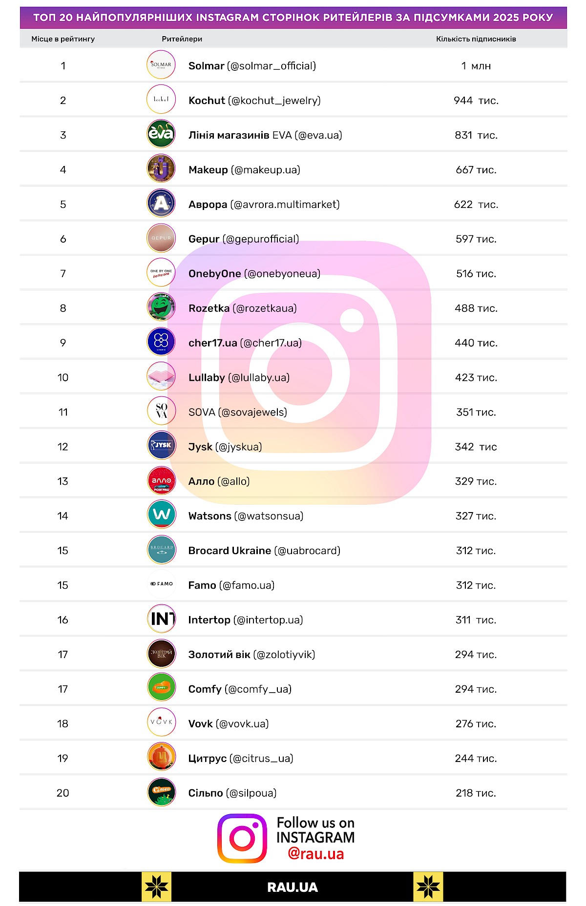 Битва за мільйони: топ 20 сторінок українських ритейлерів у соціальних мережах за підсумками 2025 року