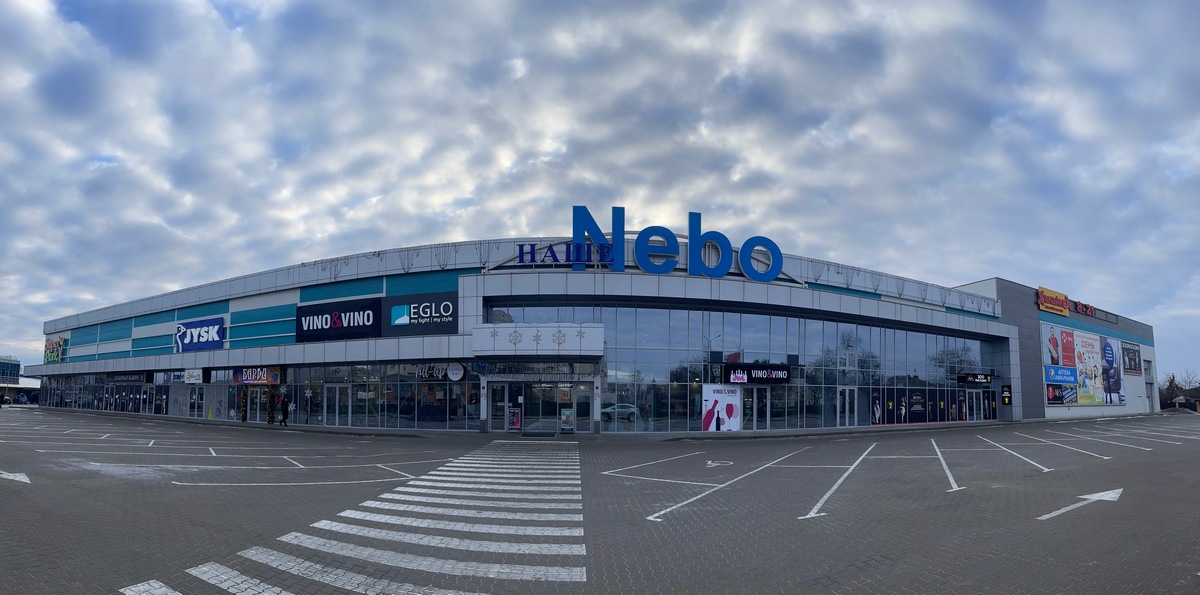 ТРЦ Наше Nebo розташований в 5 км від Києва. В 15-тихвилинну зону охоплення об’єкта входять чотири населені пункти, що швидко розвиваються в контексті житлової забудови: Крюківщина, Гатне, Тарасівка та Вишневе із загальною чисельністю населення ~75 000 осіб. ТРЦ обладнаний великим та зручним паркінгом на 300 паркомісць.