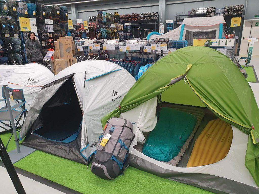 Поруч – кілька відділів для туризму. Вартість рюкзаків тут стартує від 100 грн – це невеликі рюкзаки на 10 л, які підійдуть дитині або дівчині для прогулянки на природу або екскурсії. Представлено тут і багато іншого важливого для походів спорядження: намети, спальні мішки, каремати, столові предмети, одяг і взуття.