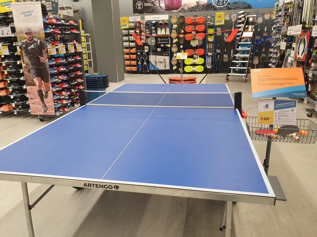 В кінці залу в самому центрі представлений інвентар для ігор в теніс, стрільби з лука і дартс. Частина цього інвентарю також можна протестувати – тут розтягнута сітка та встановлено тенісний стіл.