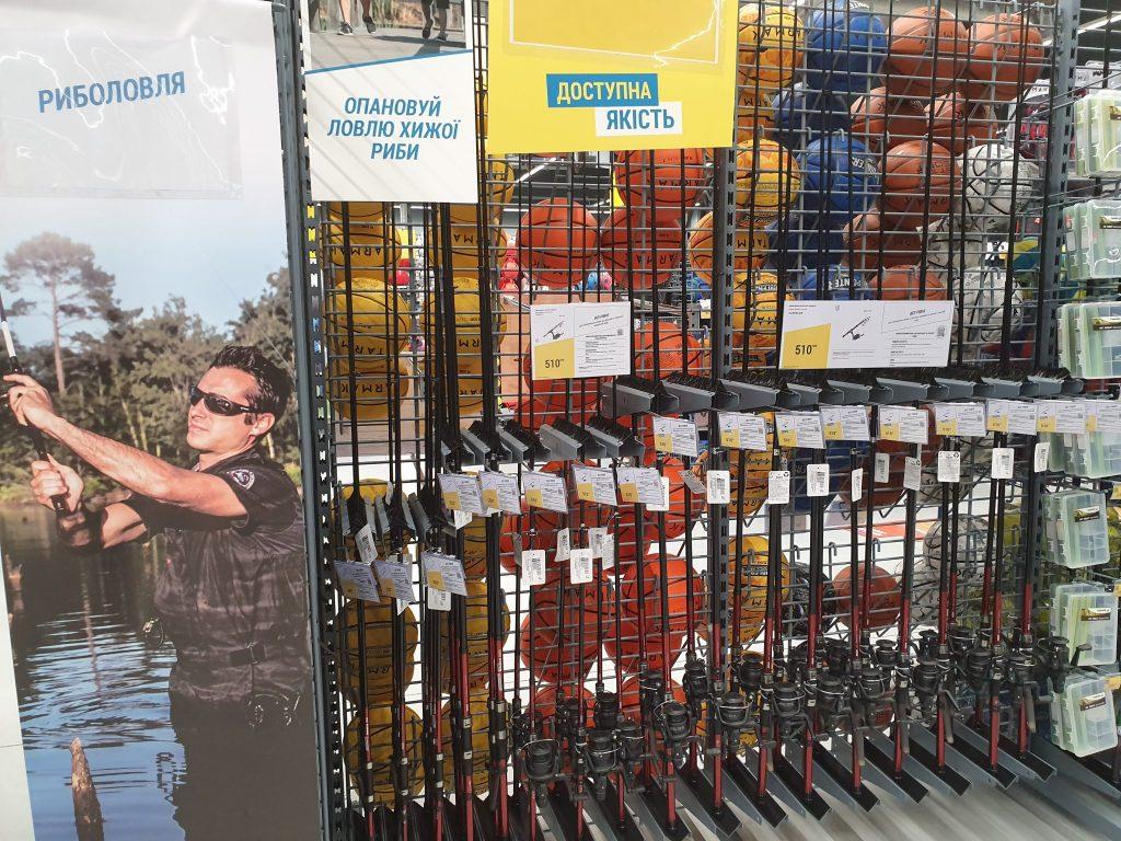 Мультибрендовою зоною в Decathlon на Почайній є хіба що відділ риболовлі. Артикулів тут на порядок більше, ніж в інших відділах, так як різні види риболовлі вимагають багато різного дрібного інвентарю.