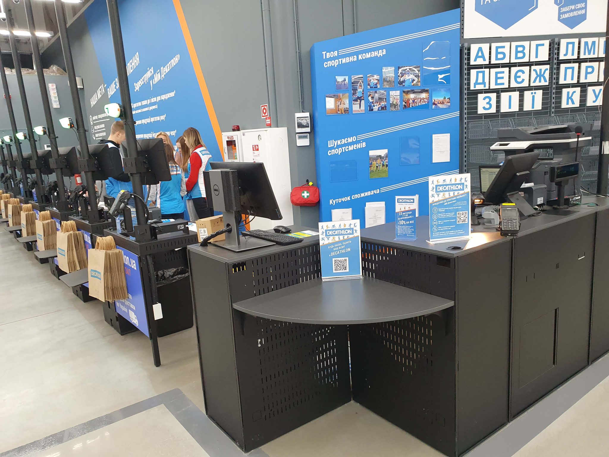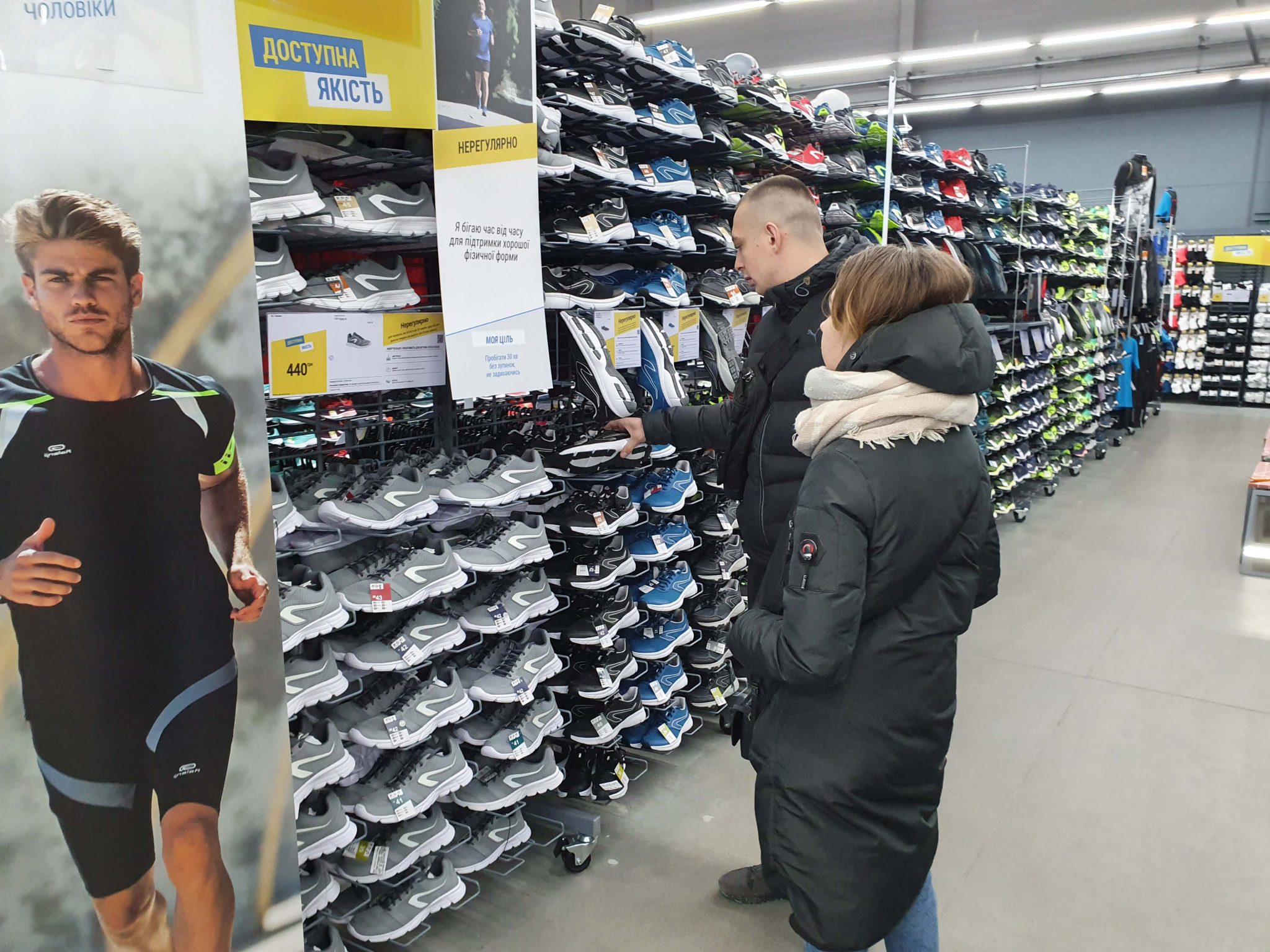 Для відвідувачів працює сім кас і одна точка сервісного обслуговування. Всього в магазині продається 5000 SKU, у сумі ж це – 70 000 одиниць запропонованих товару. Викладку розширила максимальна для мережі представленість товарів для бігу, фітнесу, зимових видів спорту та бодібілдингу. Серед нових видів спорту, товари яких досі не були в Decathlon в Україні – сквош, гольф, сноубордінг, хокей і хокей на траві, а на весну анонсують спорядження для гри паддл і пляжного тенісу.