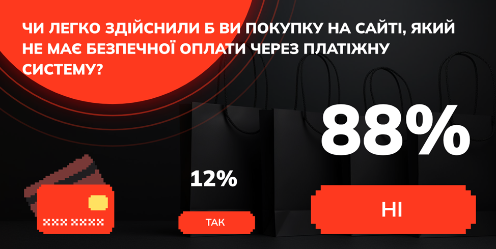 Ще одне запитання стосувалося наявності безпечної оплати через платіжну систему. 88% опитаних заявили, що не купуватимуть на сайті без такої можливості.