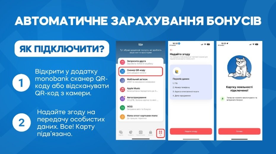 Після активації сервісу всі наступні покупки автоматично враховуватимуться в програмі лояльності при оплаті monobank.