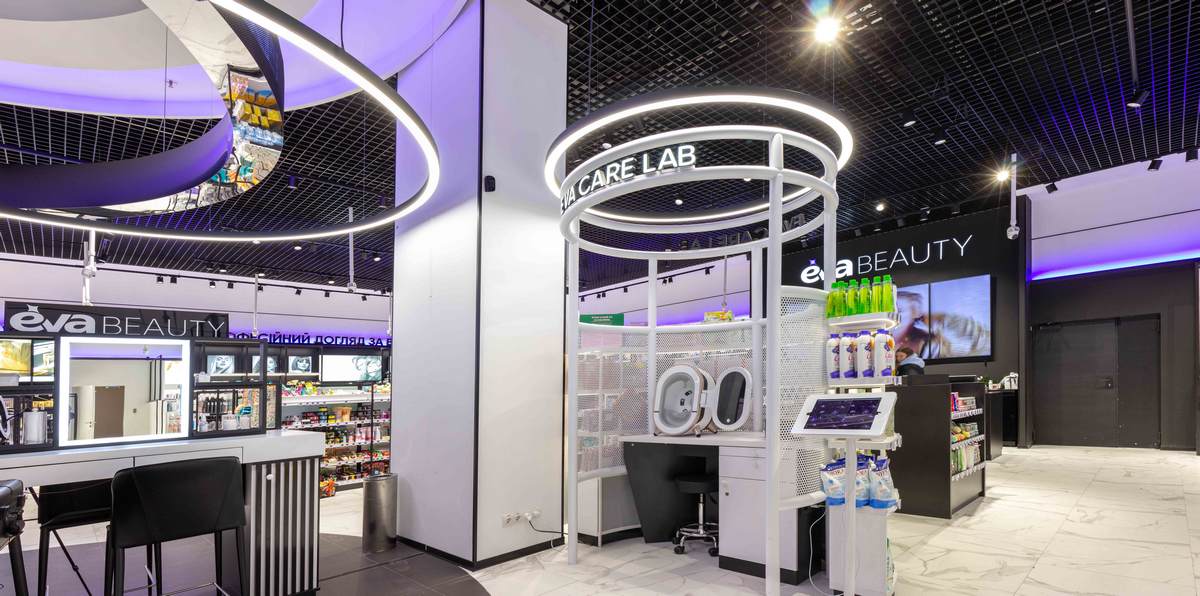 Інвестиції у відкриття торговельної точки склали близько 15,5 млн грн. Екскурсію магазином провела директорка бізнес-напряму Eva Beauty Василина Петлицька. І розпочалася вона з експериментального для мережі напрямки – першого для ритейлеру салону краси Beauty Salon by Eva.