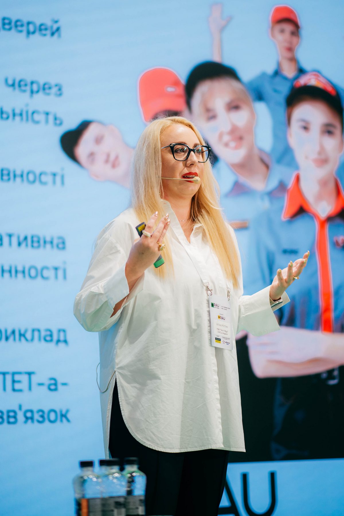 На сцені Аліна Кіптик, СЕО ТОВ “Тесті Фуд” – франчайзингового партнера KFC в Україні з презентацією на тему: “Формування культури свободи та бізнес, який будується на людях”