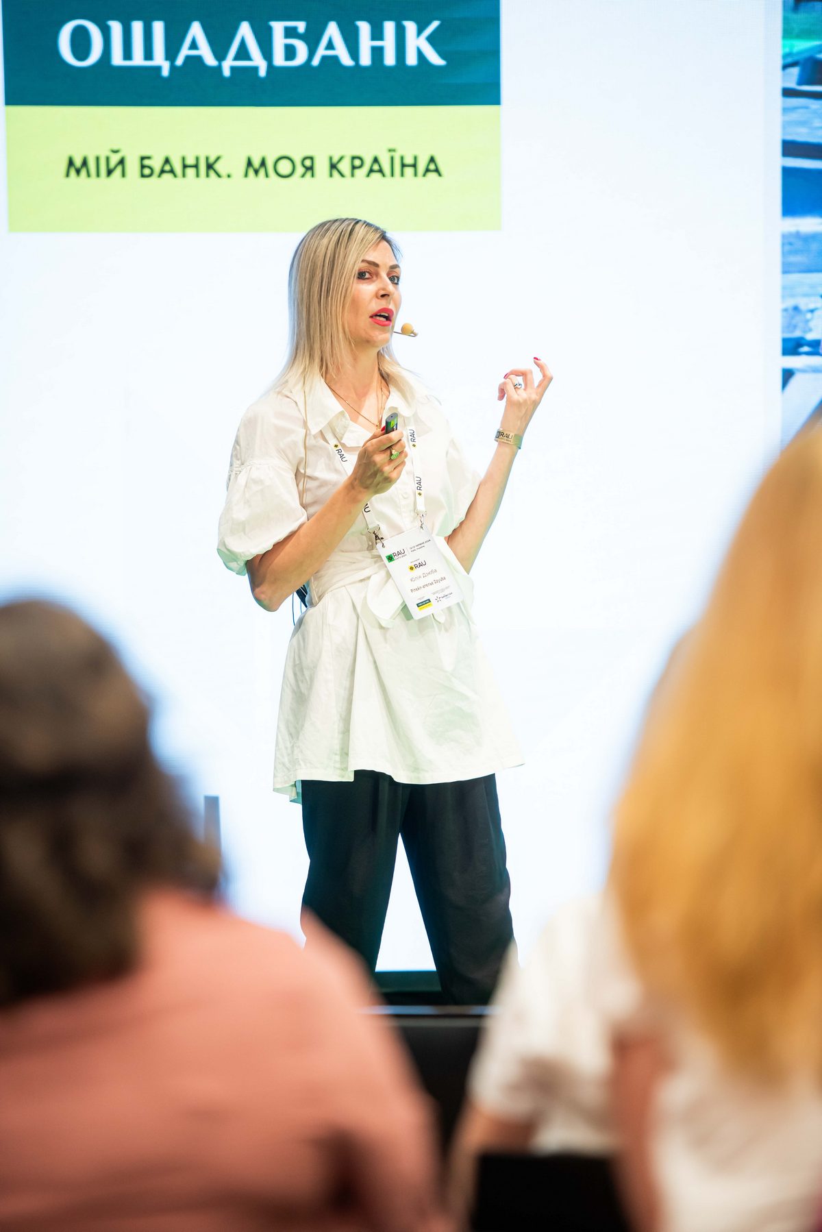 Заступник голови правління Ощадбанк Антон Тютюн з презентацією «Моя безбар`єрність». Він розповів про особливості інтеграції інклюзивних програм в українську фінансову систему та перспективи розбудови безбарʼєрного банківського сектору
