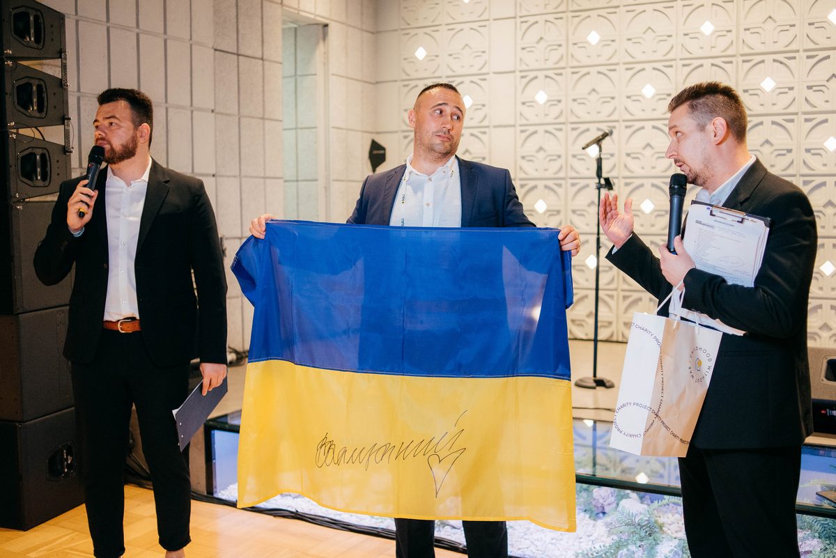 Своєю чергою БФ Руслана Шостака зібрав 152 000 грн. Для аукціону Фонд надав прапор України з підписом легендарного екс-головнокомандувача ЗСУ Валерія Залужного, та маленькі копії автівок, які фонд відправляє на фронт – також з підписом Залізного Генерала.