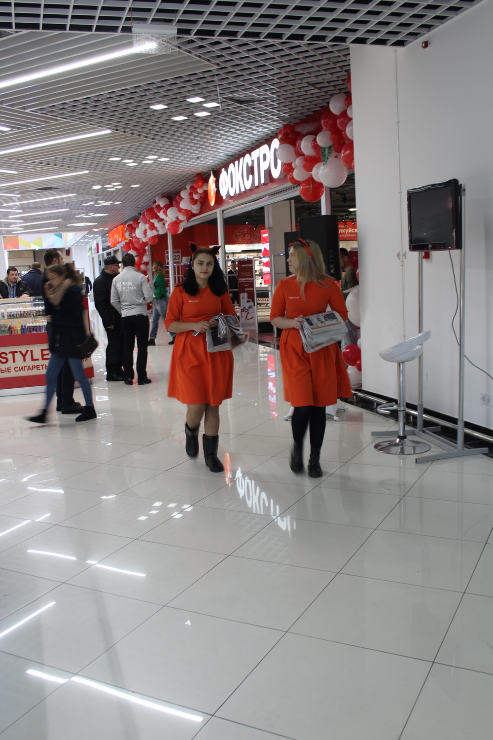 Про відкриття магазину все перехожі дізнавалися ще на вулиці: промоутери активно роздавали листівки і переконували киян відвідати новий Фокстрот в ТЦ ГородОК. А в самому торговому центрі майбутніх клієнтів залучали аніматори: дівчата, одягнені в костюми лисичок: «тотемної тварини» мережі.