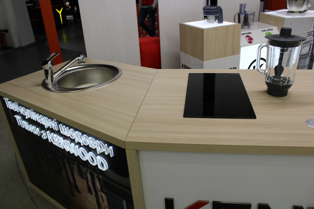 Навпроти касової зони: місце для кулінарних майстер-класів і демонстрації можливостей техніки. Партнер цього куточка гурманів – Kenwood.