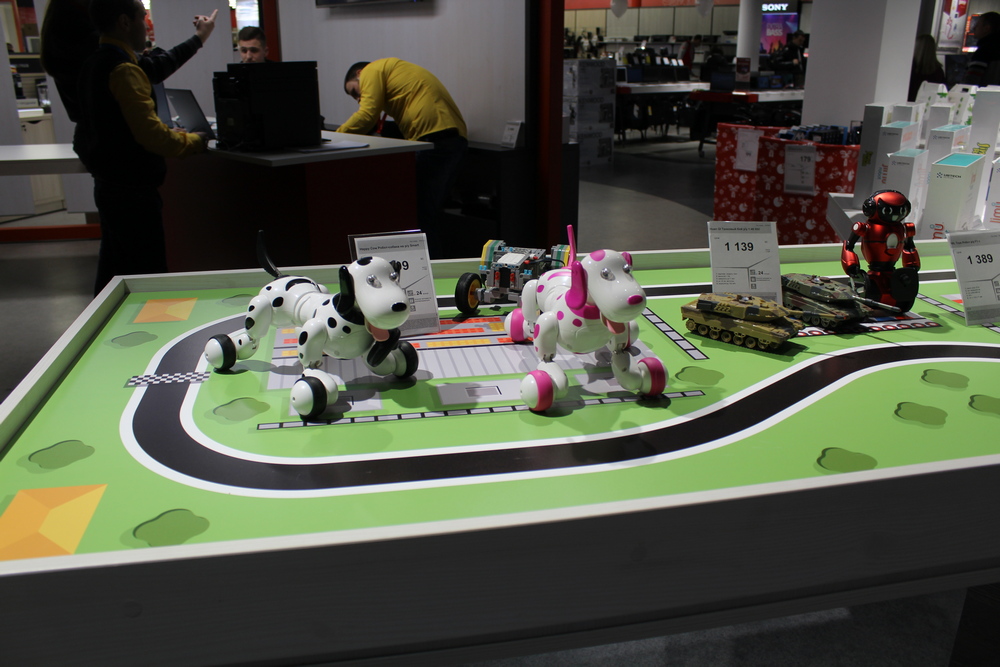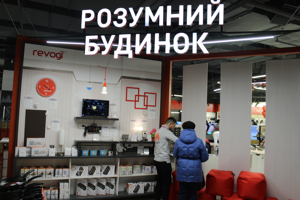 Недалеко від куточка шеф-кухаря знаходиться сервісна зона та стелаж з товарами для «розумного будинку».