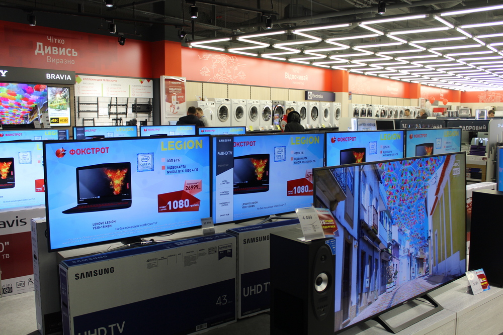 Фокстрот вражає своїми розмірами і різноманітністю товару. Здається, знайти тут можна все, що завгодно: від роботів-собачок і аксесуарів для гаджетів до вражаючого вибору телевізорів і великої побутової техніки, посуду та багато чого іншого.