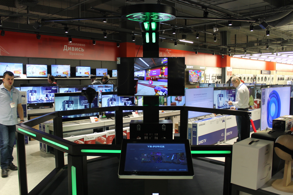Але це не єдина відмінність нового об’єкта від інших супермаркетів мережі. Наприклад, тут облаштовано зону віртуальної реальності, тож будь-хто може протестувати VR-техніку.