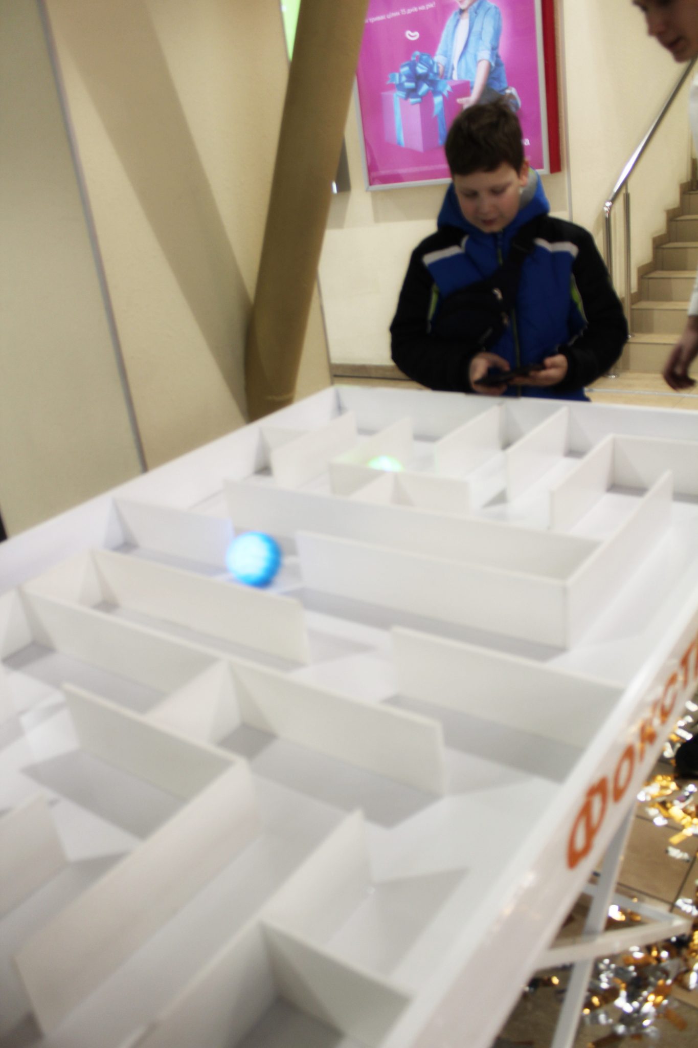 А при вході в магазин маленьким відвідувачам пропонували зіграти в «роболабірінт»: провести радіокеровані моделі через лабіринт швидше суперника. Переможцям вручали невеликі, але приємні подарунки: парасольки, пауербанки й інші пам’ятні презенти.