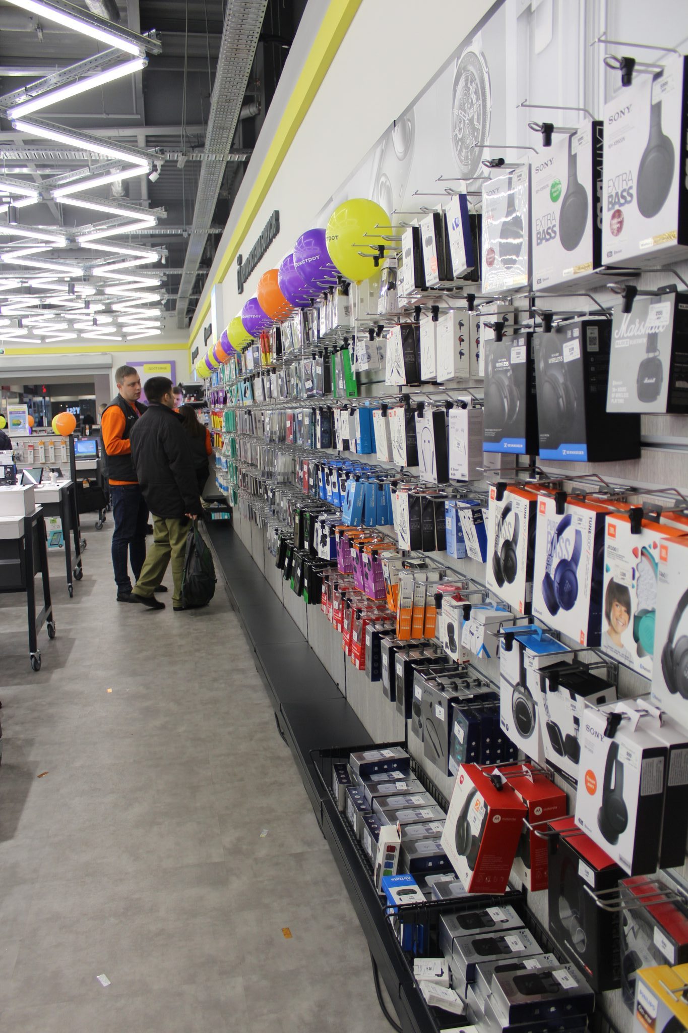Крім того, для зручності клієнтів і економії часу відразу біля гаджетів розташовані додаткові товари, які найчастіше купують разом з ними. Поруч зі смартфонами: навушники, захисні скла, зарядні пристрої, чохли, пауербанки та інша подібна дрібнота.