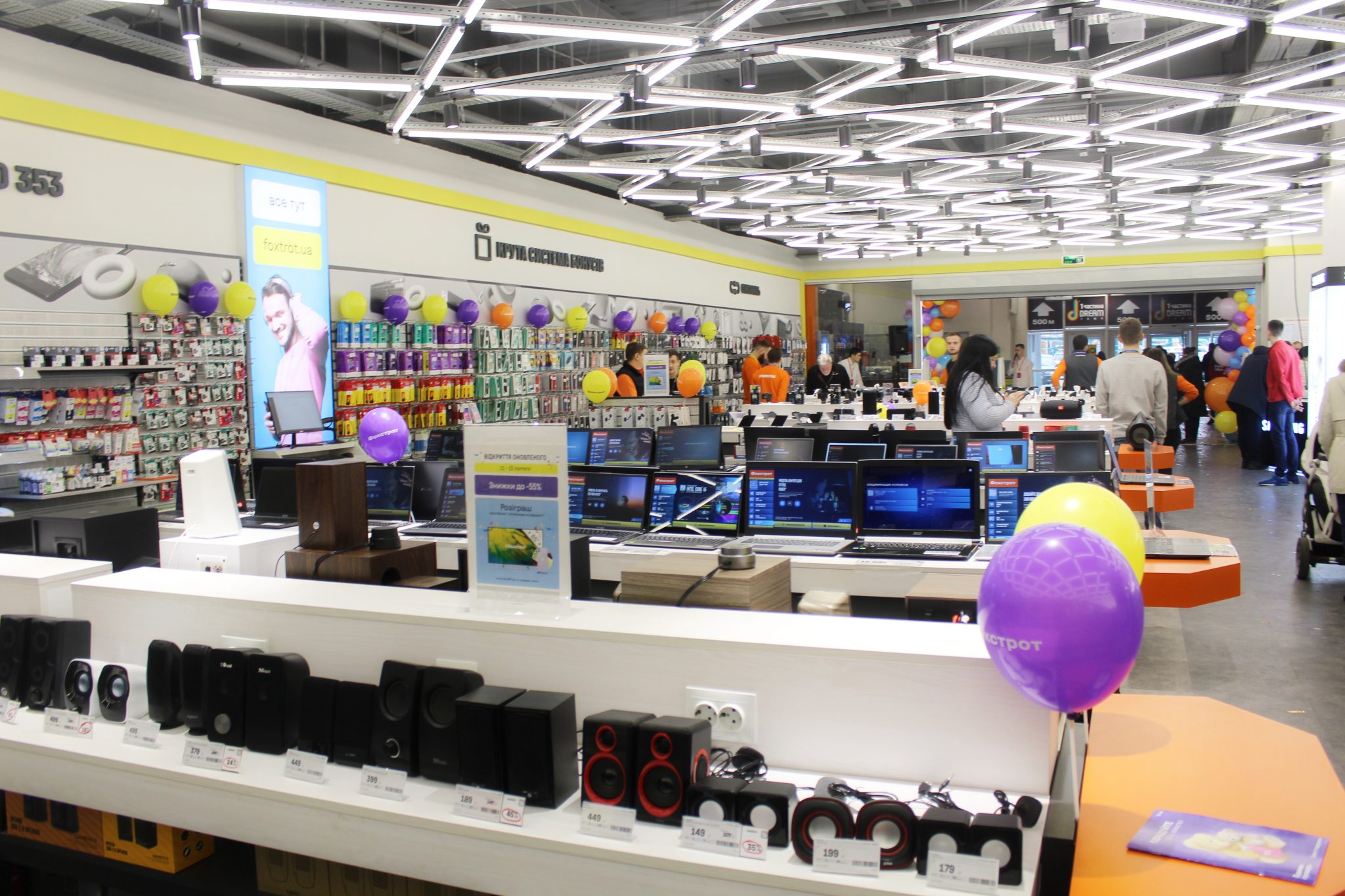 У п’ятницю, 21 лютого, у київському торгово-розважальному центрі Dream Town відбулося урочисте відкриття оновленого магазину провідної української мережі техніки та електроніки Фокстрот. В ході реформату площа торгової точки помітно збільшилася – на 300 кв. м – і досягла 1040 «квадратів». Всього в асортименті об’єкта представлено понад 10 00 SKU, плюс є можливість замовлення всього асортименту інтернет-магазину foxtrot.ua за допомогою «віртуальної полиці».