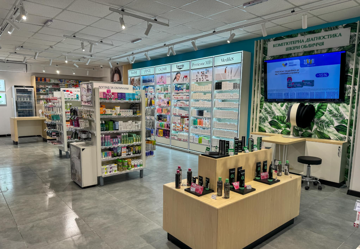 Також було впроваджено інноваційні сервіси: діагностика стану шкіри за допомогою ШІ-технологій Observ 520x, термінали самообслуговування, поштомати. Три мобільні аптечні пункти (МАП) мережі обслуговують 146 населених пунктів на прифронтових територіях Харківської та Херсонської областей, де немає стаціонарних аптек. За рік понад 21 000 пацієнтів скористалися їх послугами.