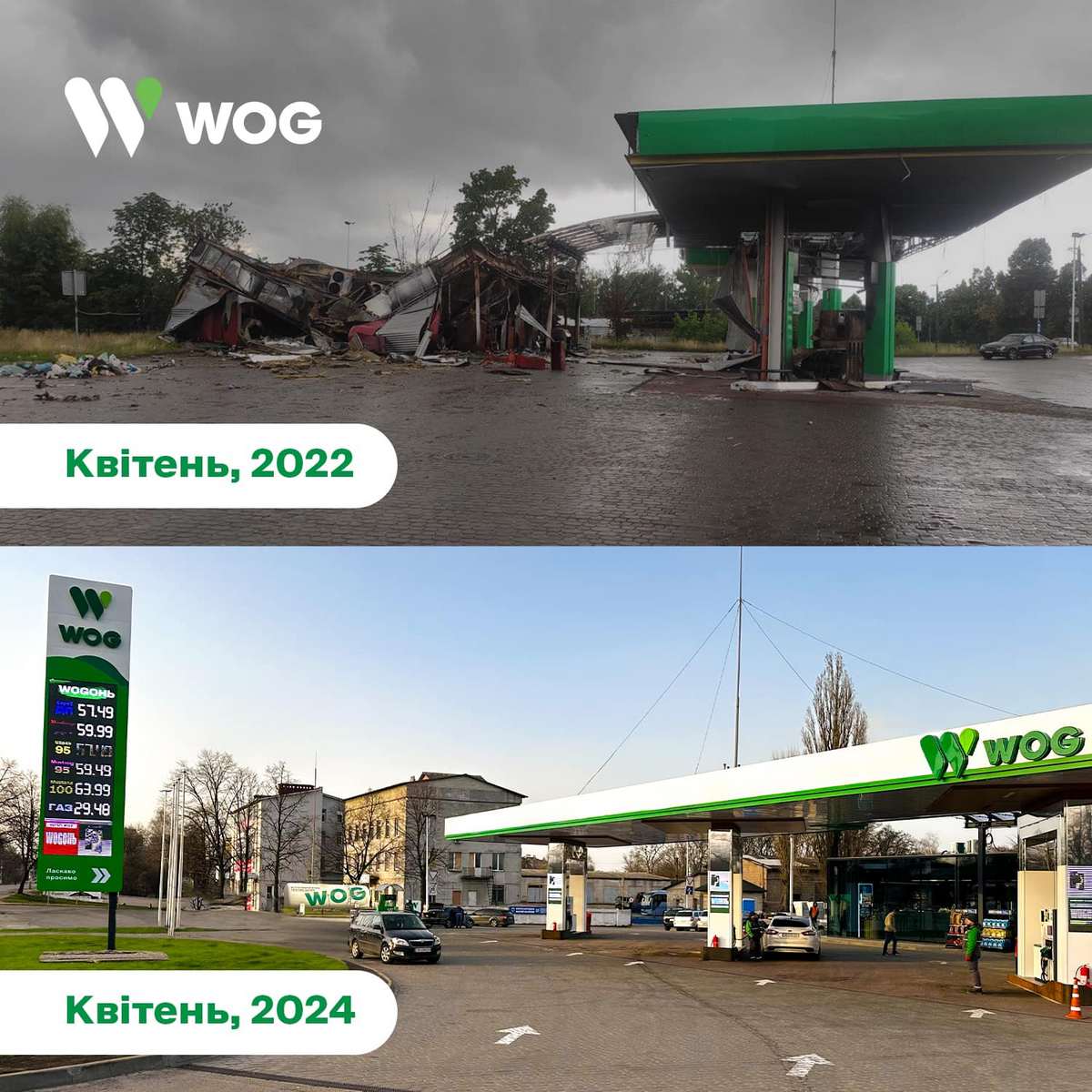 У 2024 мережа WOG продовжила реновацію своїх об’єктів. Зокрема, капітальну реновацію АЗК здійснили на об’їзній Звягеля на Житомирщині. Також WOG відновив зруйнований окупантами АЗК в Чернігові на проспекті Миру, 231 А.