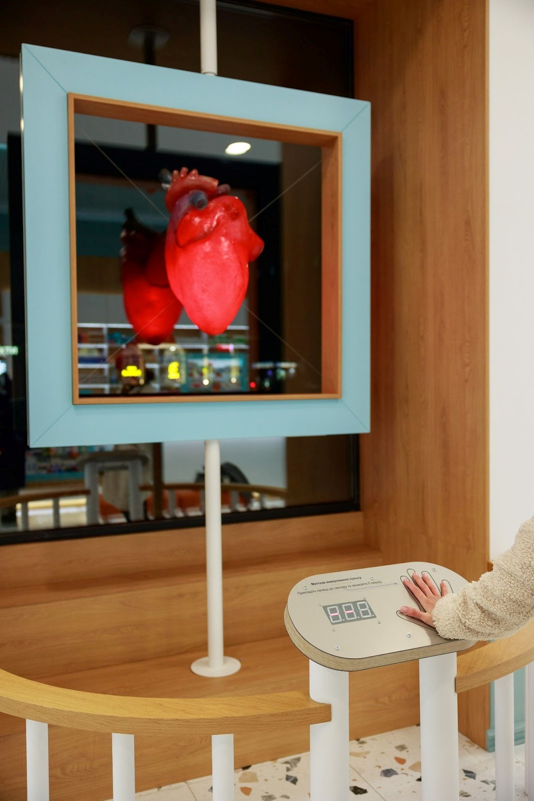 Бажаємо здоров’я не лише розширює мережу, а й впроваджує новітні технології та креативні рішення. Одним із таких проєктів стала унікальна інсталяція в центрі міста Києва за адресою вул. Велика Житомирська, 14/8. Це реалістичне анатомічне серце, яке дає можливість не лише виміряти свій пульс, але й побачити, як інсталяція засвітиться в ритмі вашого серцебиття.