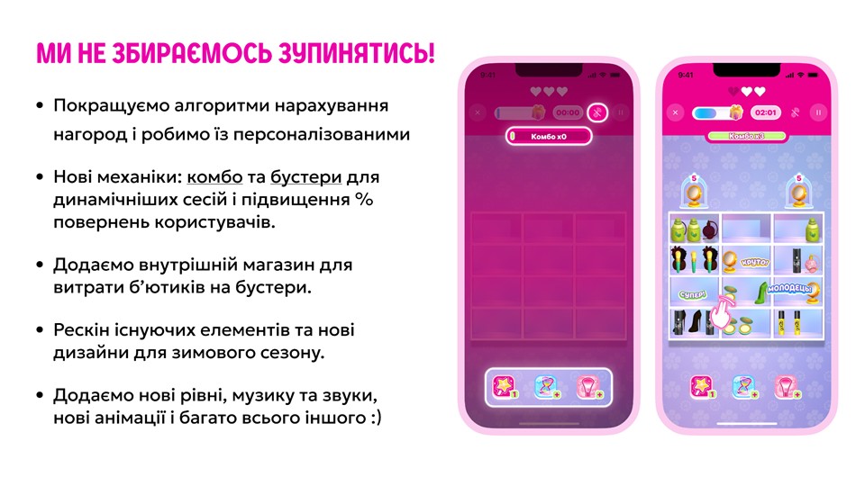 Так, Простір розваг має власну ігрову валюту – «б’ютіки». Зазначу, що для маркетологів і IT-команди, це було надзвичайно складно створити цілу екосистему, яка об'єднує наші внутрішні екосистеми, CRM-систему, і елементи GameDev плюс технології Mobile Lab. Але для клієнта це максимально просто, інтерактивно та в один клік – і емоція, і вигода від покупки.