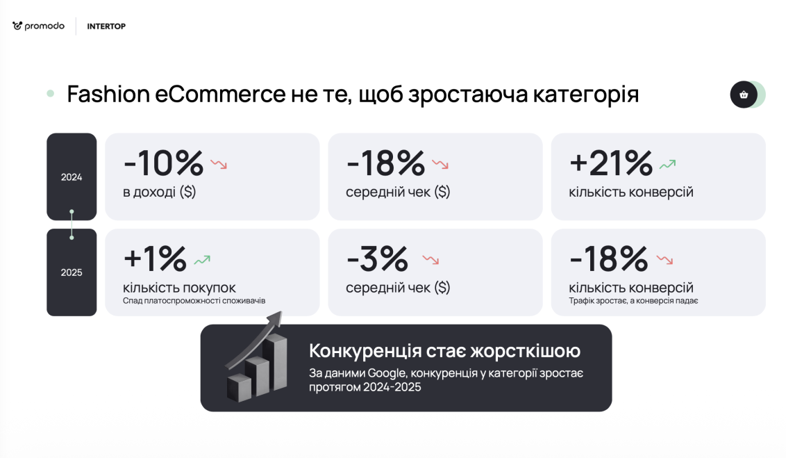 Наразі Fashion e-сommerce перестав бути зоною стрімкого органічного зростання. Останні два роки ця категорія демонструє стагнацію: кількість покупців залишається незмінною, а платоспроможність подекуди знижується. Проте досвід компанії Intertop доводить: навіть на стабільних або «стагнуючих» ринках можна подвоїти дохід, не роздуваючи рекламні бюджети.