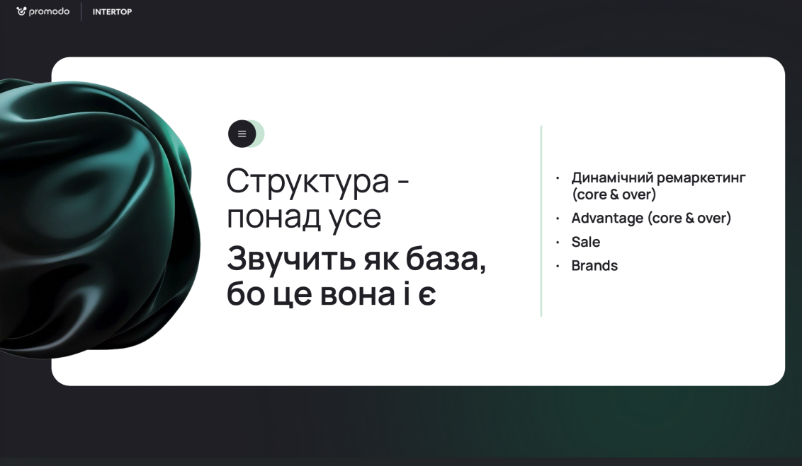 Для підтримки такої динаміки компанія відмовилася від традиційних щомісячних звітів на користь щотижневого аналізу даних CRM у зв'язці з показниками рекламних кабінетів. Пріоритетом став фокус на чистому прибутку, а не на кількості кліків, що включав жорстке відсікання товарів, реклама яких була економічно невигідною. Зрештою, кейс Intertop підтверджує, що найсильніші фінансові результати народжуються не в абсолютній свободі, а в межах чітких обмежень та фокусу на конкретних бізнес-задачах - це результат дисциплінованої роботи з кожним пікселем воронки продажів.
