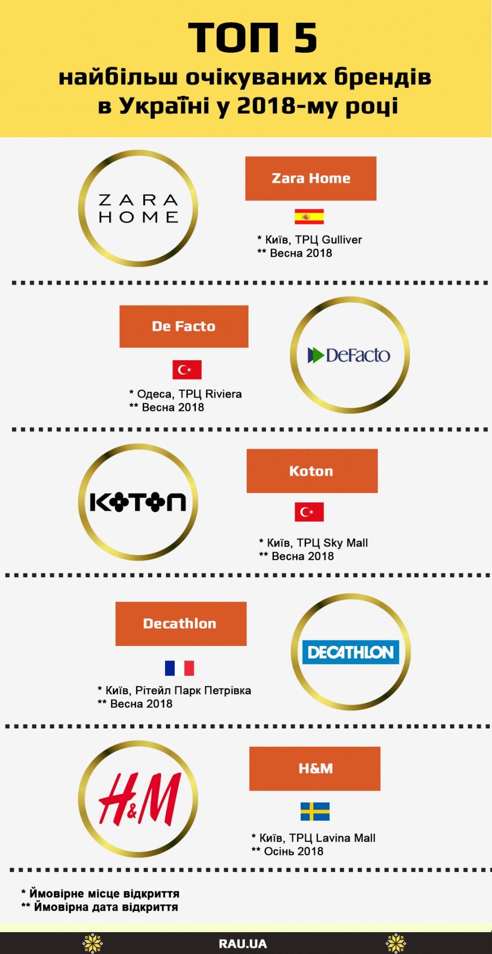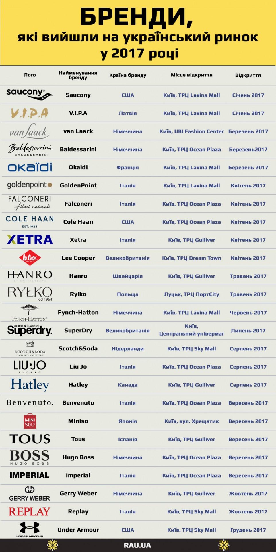 Інфографіка: 25 нових брендів, які вийшли на український ринок в 2017 році