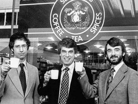 У 1971 році троє друзів з університету Сан-Франциско Джеррі Болдуін, Гордон Боукер та Зев Сігл заснували бренд Starbucks і відкрили першу кав’ярню біля відомого ринку Пайк-Плейс у Сіетлі. Але перш ніж зайнятись спільним кавовим бізнесом, кожен з них вже встиг попрацювати у інших галузях: Болдуін працював шкільним учителем, Боукер був письменником, а Зігл викладав історію. Вони залишили свої нинішні професії, щоб об’єднати зусилля і реалізувати своє бачення – представити якісну каву темного обсмаження жителям Сіетла. Тож, у першому закладі Starbucks продавалися кавові зерна, чаї та спеції з усього світу, а також обладнання для приготування кави.