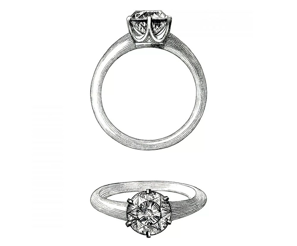 Засновник Tiffany & Co. Чарльз Льюїс Тіффані розробив першу сучасну каблучку для заручин ще в 1886 році, коли представив Tiffany Setting. Оригінальна каблучка Tiffany Setting мала діамант у вигляді пасьянсу, який утримувався над обручкою шістьма платиновими штифтами. “Шпильки піднімали діамант з обручки на світло, – пояснює головний гемолог Tiffany & Co. Мелвін Кіртлі. Зняття діаманта з пальця і потрапляння на нього максимальної кількості світла забезпечує максимальне сяйво.