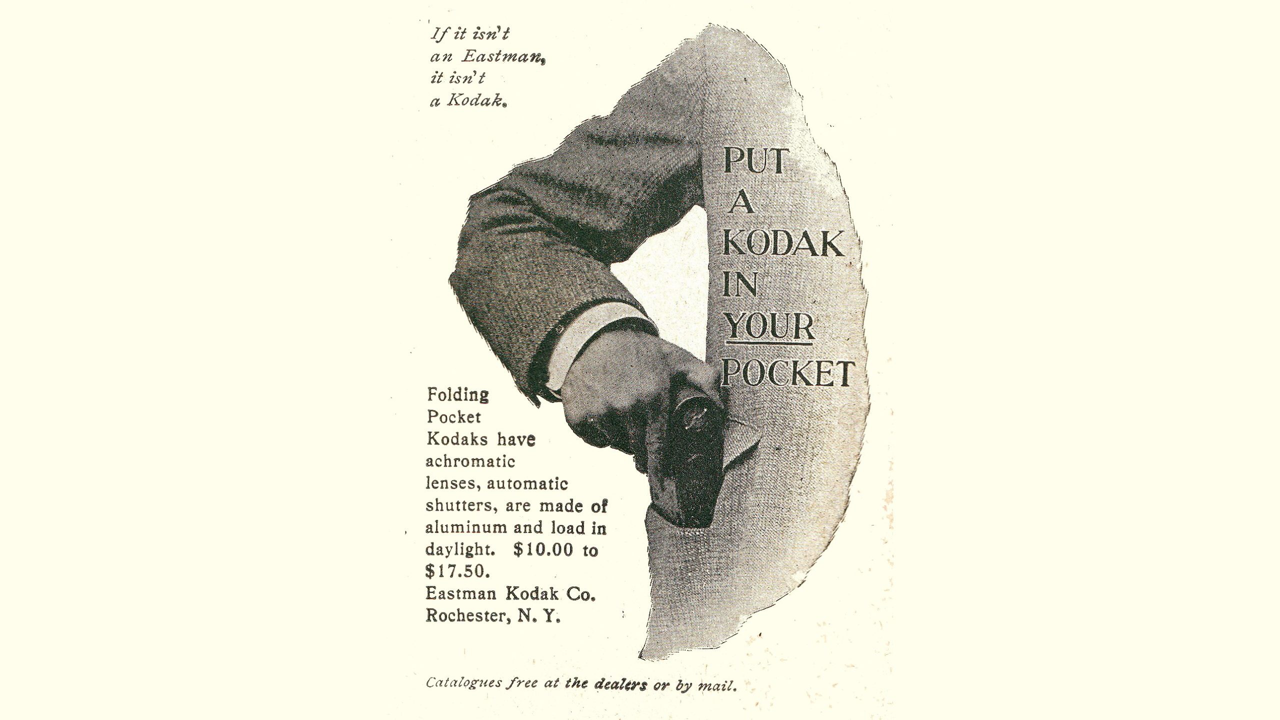 У 1888 році Істмен продав першу камеру Kodak за 25 доларів. На той час фотографія не була масовим явищем, а тим паче — бізнесом. Річ у тім, що для фотографічної плівки потрібні були необхідні знання, технічні навички та відповідне обладнання. Однак Kodak зробили фотографію доступнішою та продавали камеру із вбудованою плівкою всередині.