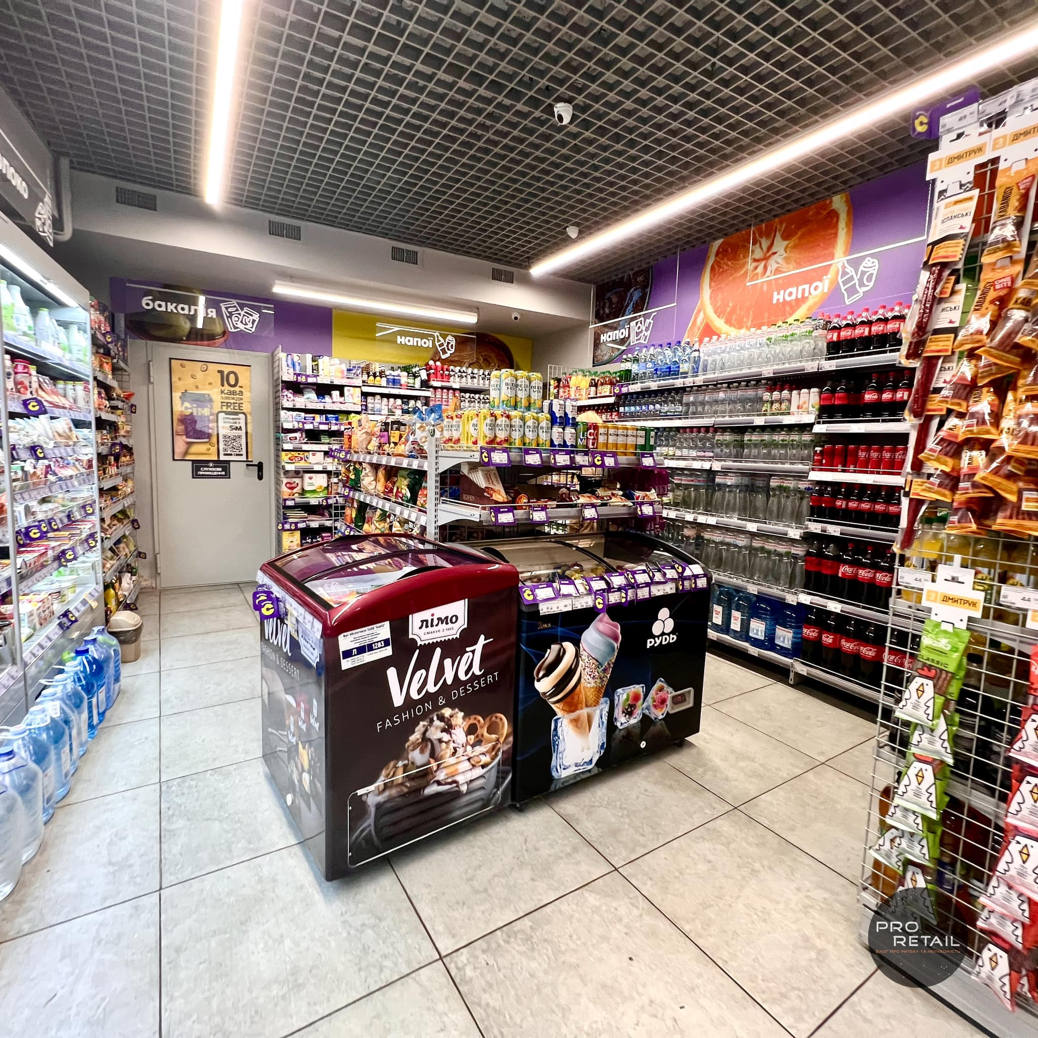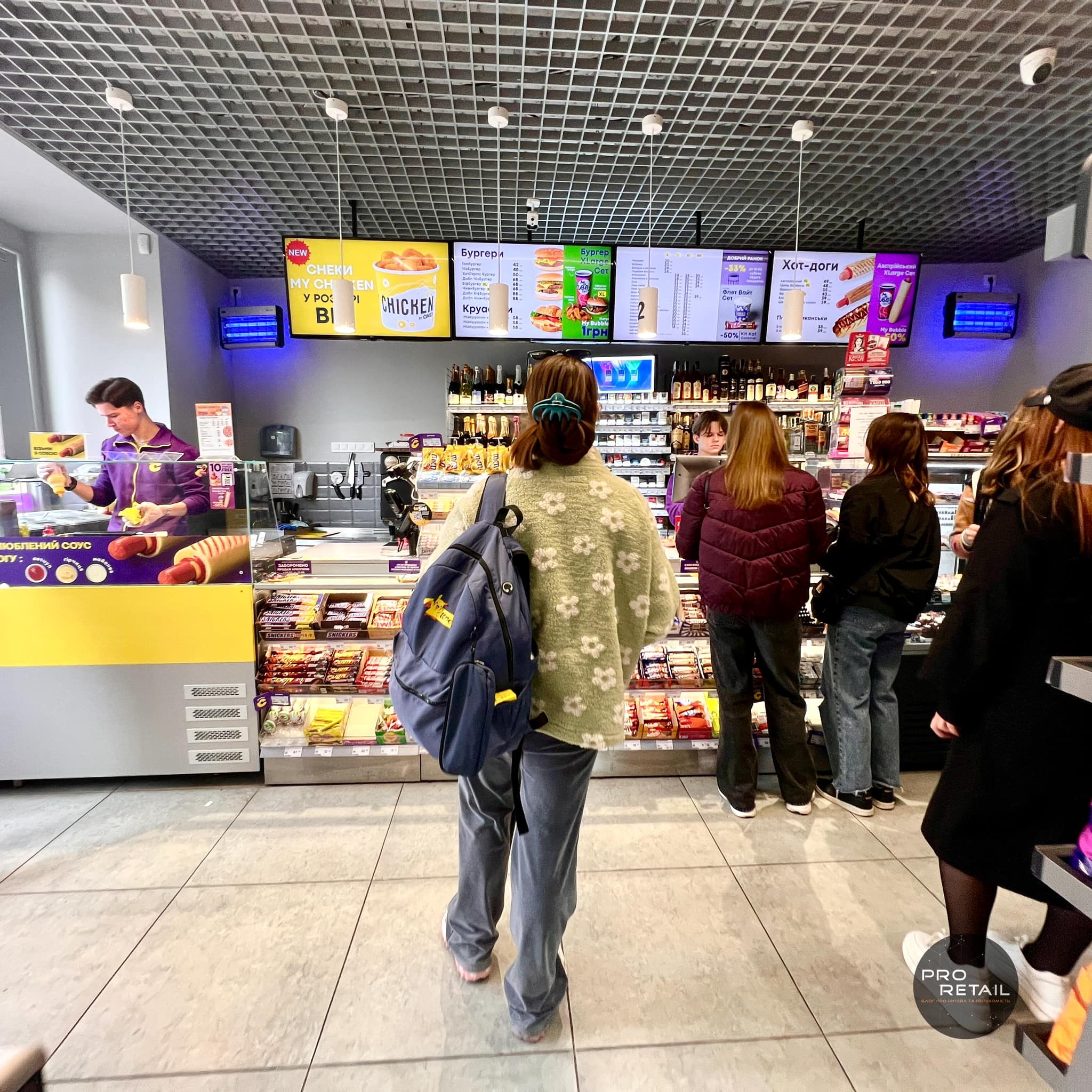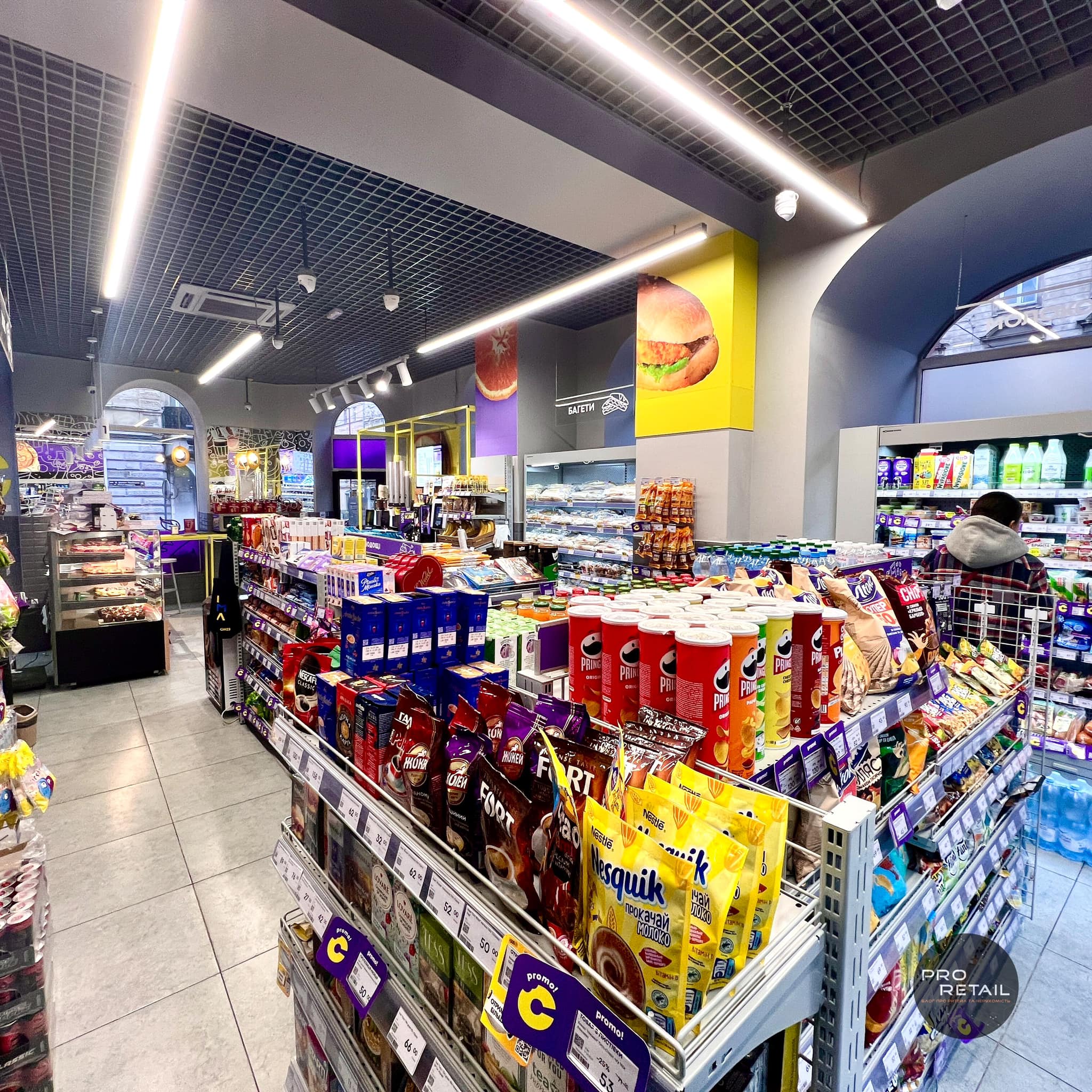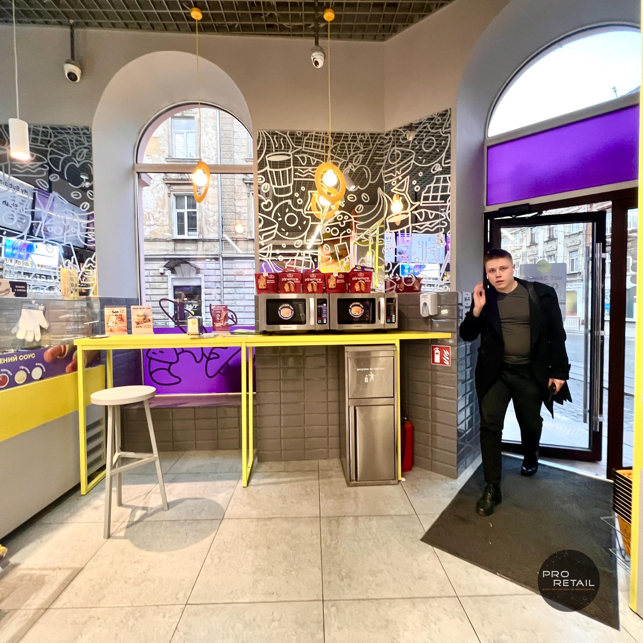 Компактний формат, багато фаст-фуду, автомати самообслуговування і бузково-жовта гамма, – як виглядає новий формат зручних маркетів Сімі від Клевер Сторс.