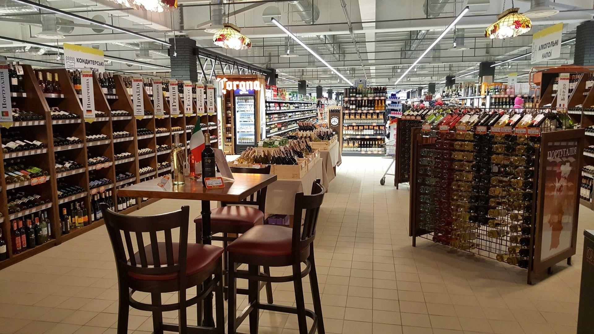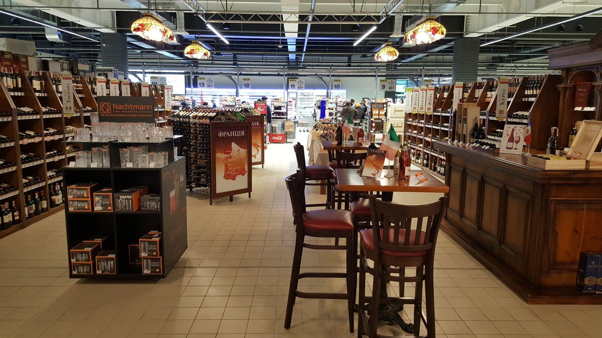 На території магазину працює винний бутік з понад 2000 найменувань вин Старого і Нового Світу, відділ “живого пива” і фуд-корт.