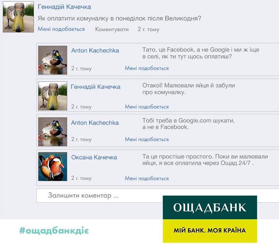 Його прикладу послідував Ощадбанк. Вийшло правда не так цікаво – частину тексту перетворили просто в рекламу.