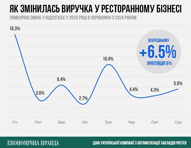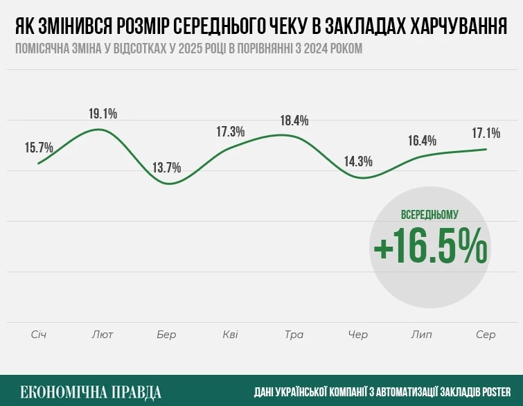 Його слова підтверджує аналітика Poster: у січні-серпні 2025 року заклади видали відвідувачам на 8,5% менше чеків, ніж за аналогічні місяці 2024 року.