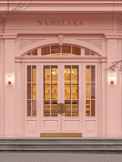 Архітектори орієнтувалися на сусідні будівлі. Зокрема, фасад Театру оперети має рожевий відтінок, що стало додатковим аргументом на користь вибору кольору для Namelaka. Команда свідомо виділила перший поверх, оскільки він є найбільш динамічним і найбільше взаємодіє з пішоходами. Це називають не «відділенням», а вписуванням бренду в архітектурний ландшафт через власну візію.