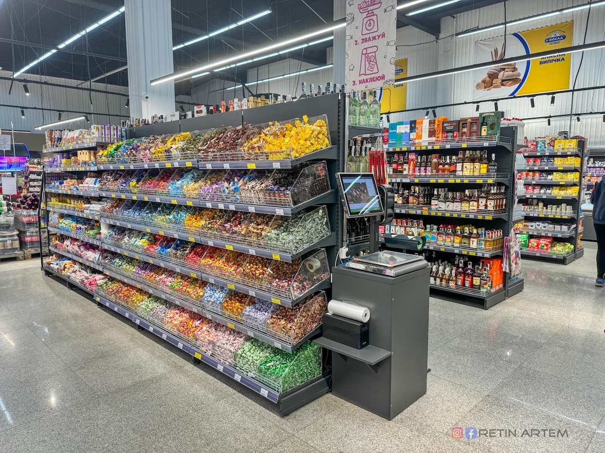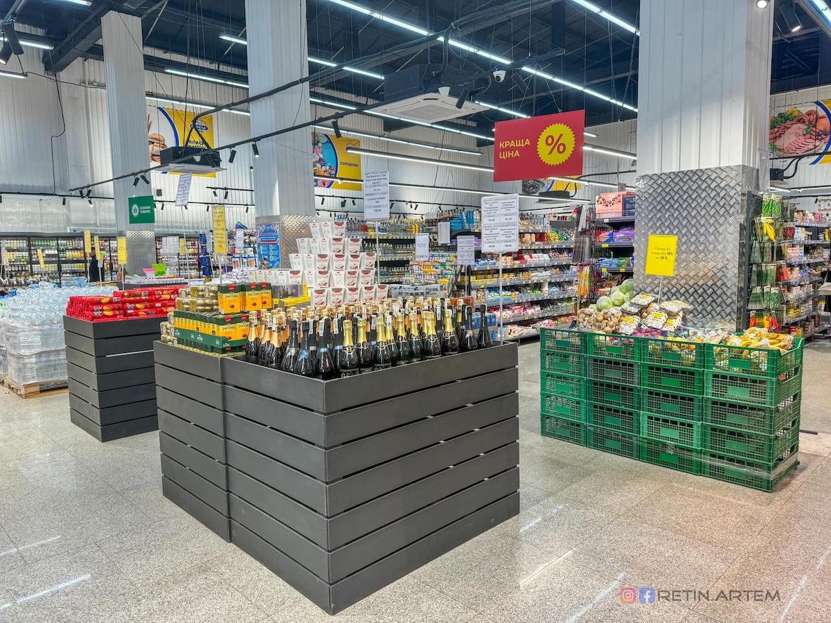 Як зазначає пан Ретін, магазин має трохи архаїчну навігацію з назвами груп товарів у вигляді ПВХ-бордів та оздоблення стін «вагонкою». “Розумію, що проєкт тестовий, а у країні війна, але ці дрібниці псують загальне враження від нового формату, який на сьогодні, є флагманом мережі”, – зауважує Артем Ретін.