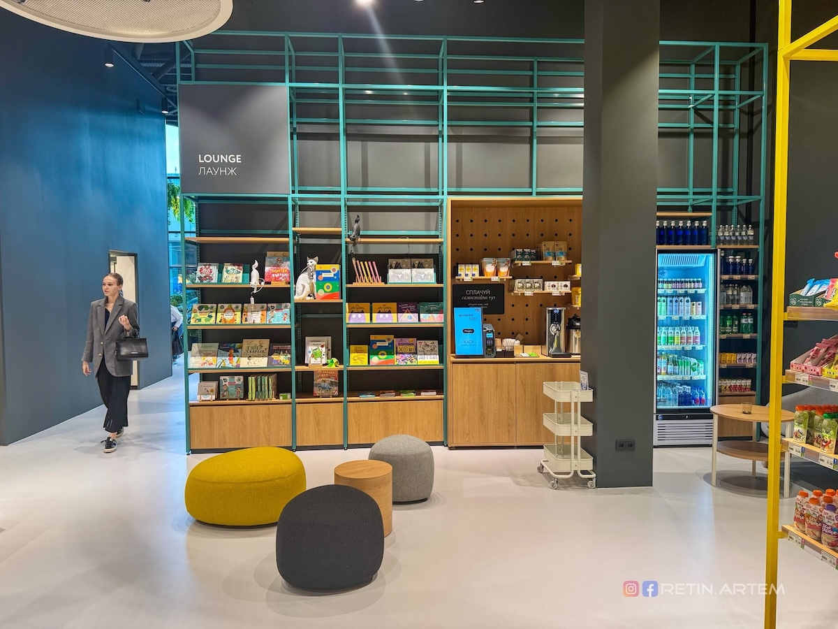 Дизайн магазину — окрема тема, яка заслуговує на увагу. Ще на стадії візуалізацій він привернув увагу своєю нетиповістю для українського ритейлу. У просторі вдало поєднані бетон, дерево, метал і текстиль, що створює баланс між функціональністю та естетикою.