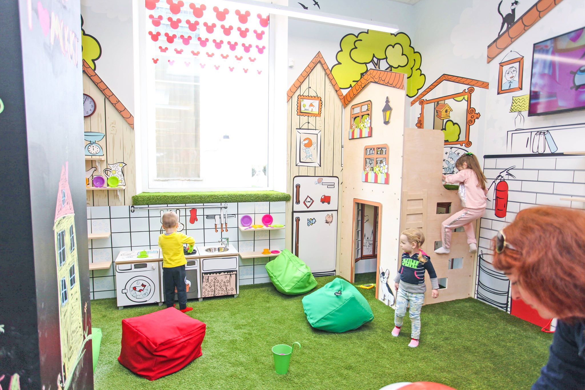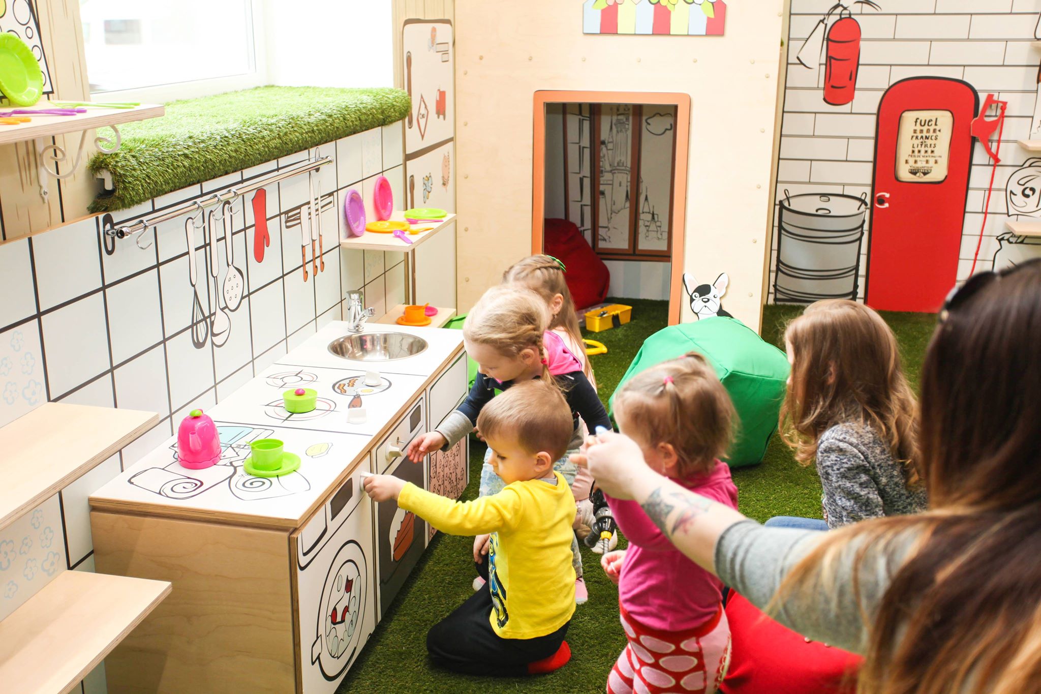 Особливістю нової локації бренду є дитяче простір. Причому це не тільки зона для тестування і розпакування іграшок, це імітація дорослого життя: тут знаходиться окрема кухня з мийкою і справжнім змішувачем, гараж з інструментами, другий поверх з диваном і зона з мультфільмами.