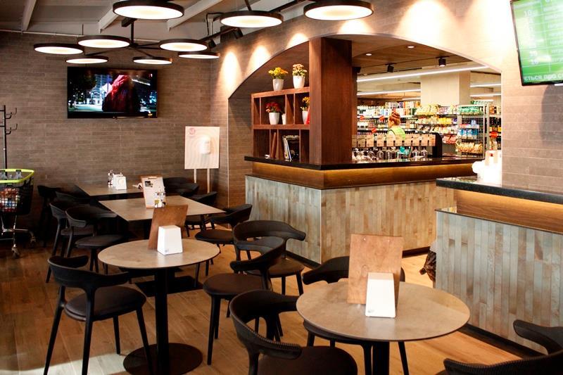 Сучасне холодильне устаткування і стелажі, натуральне дерево і акриловий камінь в інтер’єрі, новий формат кафе і відкрита кухня – чим здивував відвідувачів новий торговий об’єкт мережі NOVUS в Києві.