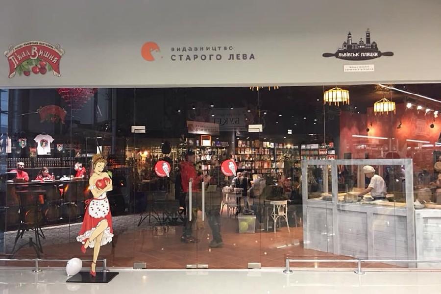 У Києві поблизу станції метро «Почайна» почаd роботу заклад у форматі “три в одному” – в одній локації об’єднали Львівські пляцки, П’яну вишню і книгарню-кав’ярню “Видавництво Старого Лева”. Як повідомляє офіційний сайт Львівського холдингу !FEST, проекти були об’єднані спільним простором в ТЦ Епіцентр за адресою проспект С. Бандери, 11 А.