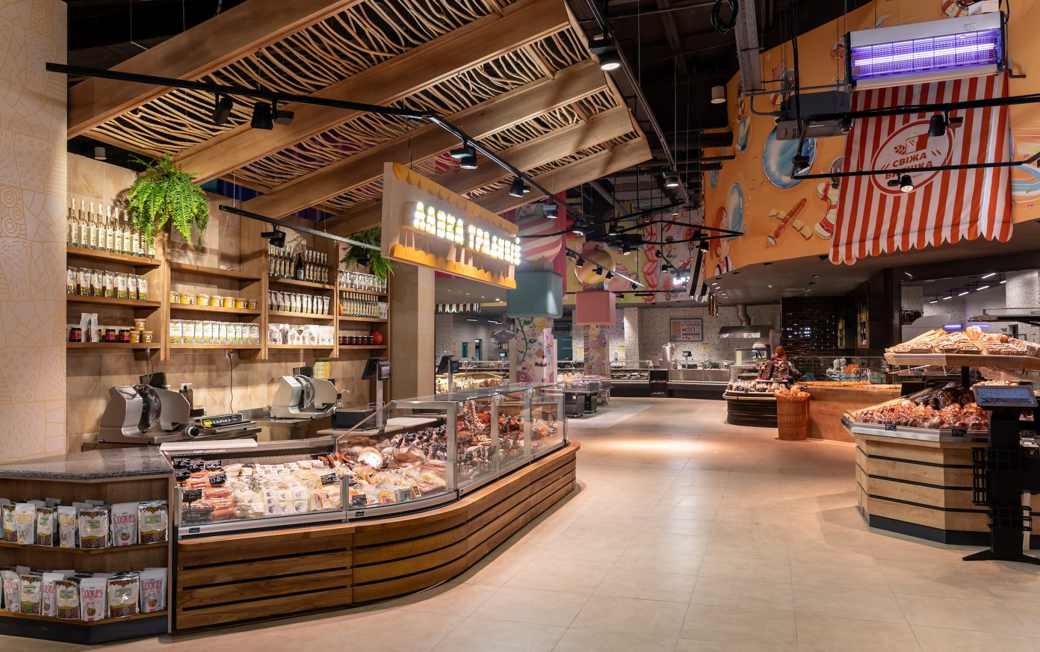 В новому супермаркеті традиційно представлено широкий асортимент продукції. Крім солодощів в декорі та кондитерському відділі, покупцям запропоновано великий вибір свіжих овочів і фруктів, свіжа випічка, товари невеликих господарств в Лавці Традицій, рибний і м’ясний відділи, бакалія та багато іншого.