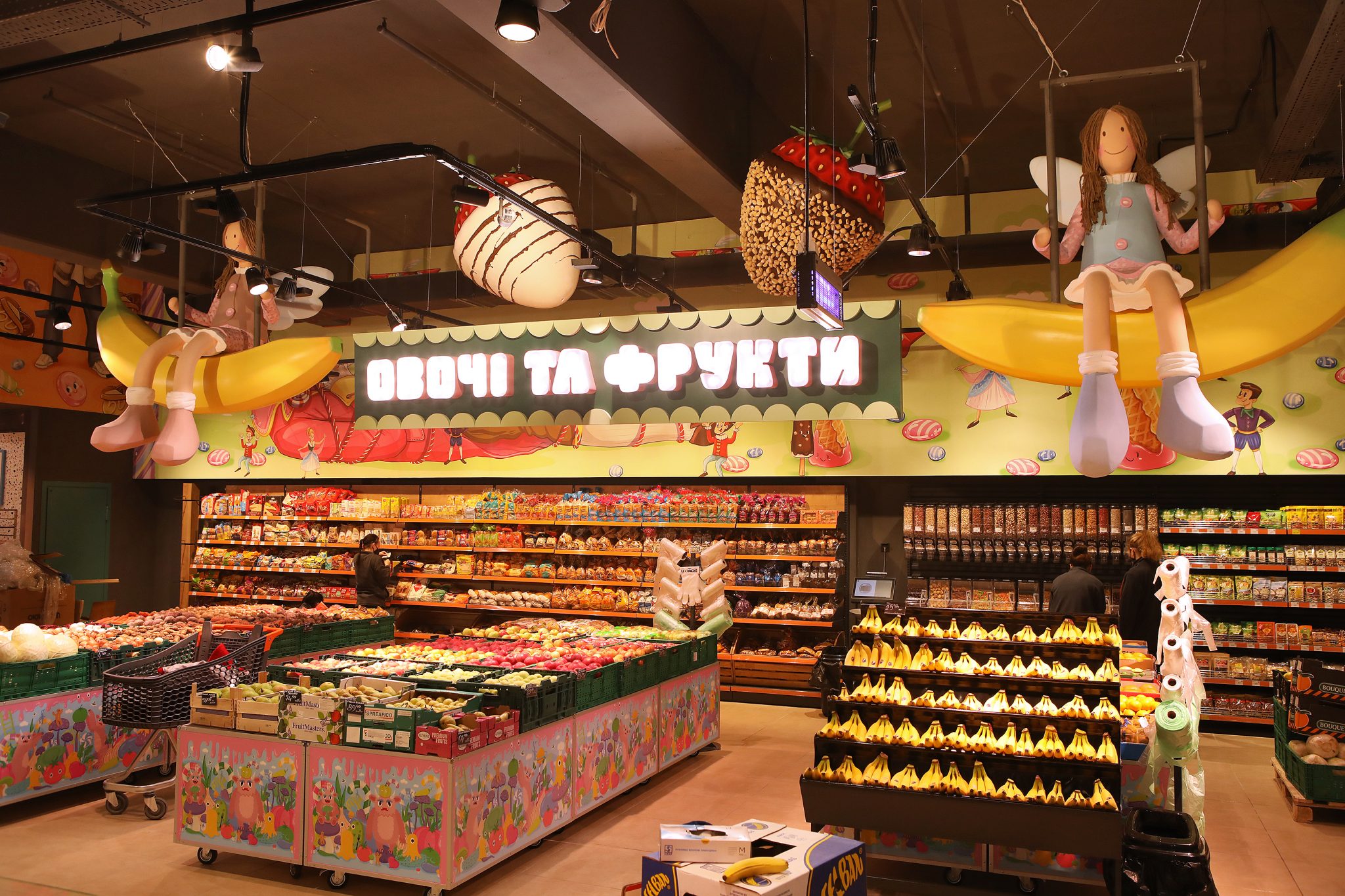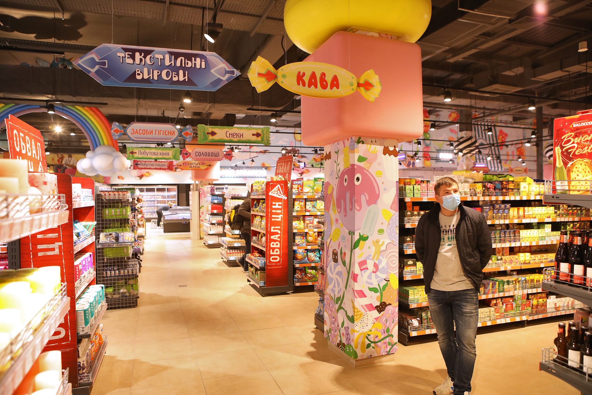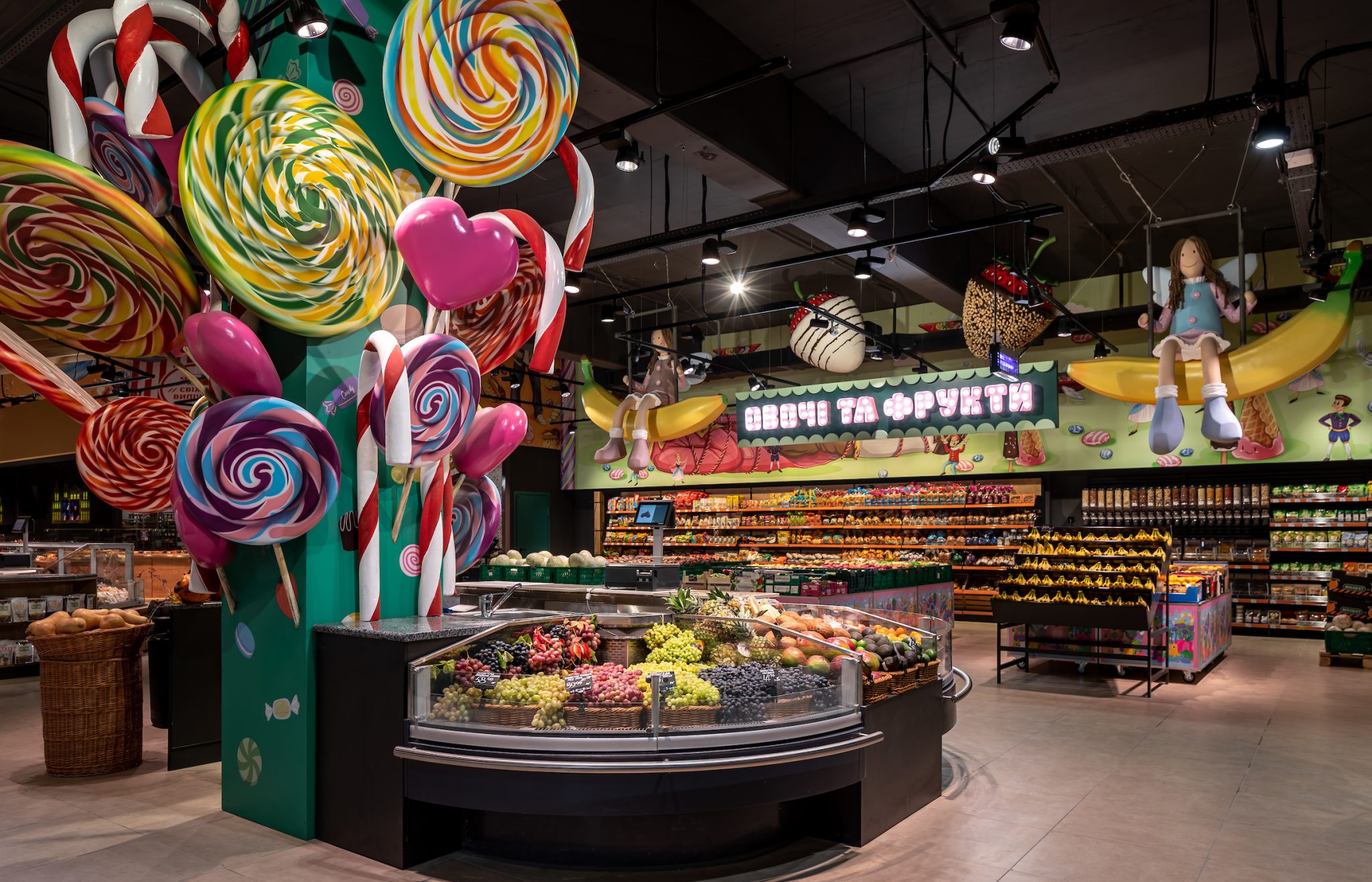«У місті солодощів ми не могли відкрити жоден інший Сільпо, тільки Candy Shop. Ми згадали всі легендарні цукерки – Білочку, Рачків, Метеор, Пташине Молоко – а потім наші художники переосмислили їх, і створили особливі солодкі ілюстрації в торговому залі. Звичайно, на цьому ми не обмежилися і додали інші класичні та сучасні солодощі до декору. Так у нас з’явився найсолодший супермаркет у всій країні», – коментує Катерина Огуряєва, директор з маркетингу мережі Сільпо.