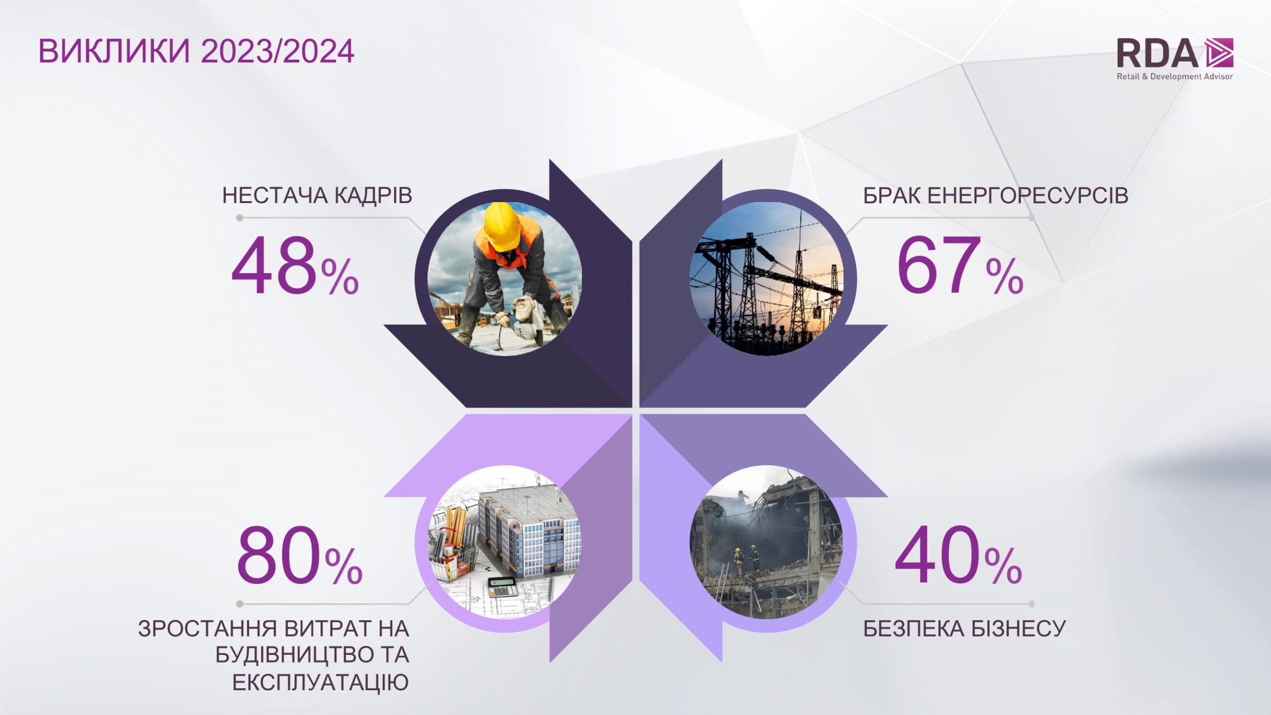 Водночас у 2024 році велика кількість працюючих магазинів та інших підприємств в Україні почала стикатися з негативними трендами, які посилились через зміни у законодавстві та погіршення безпекової ситуації. Серед основних проблем, які називали підприємці були: безпека бізнесу (40%), нестача кадрів (48%), брак енергоресурсів (67%) та зростання витрат на будівництво та експлуатацію (80%).